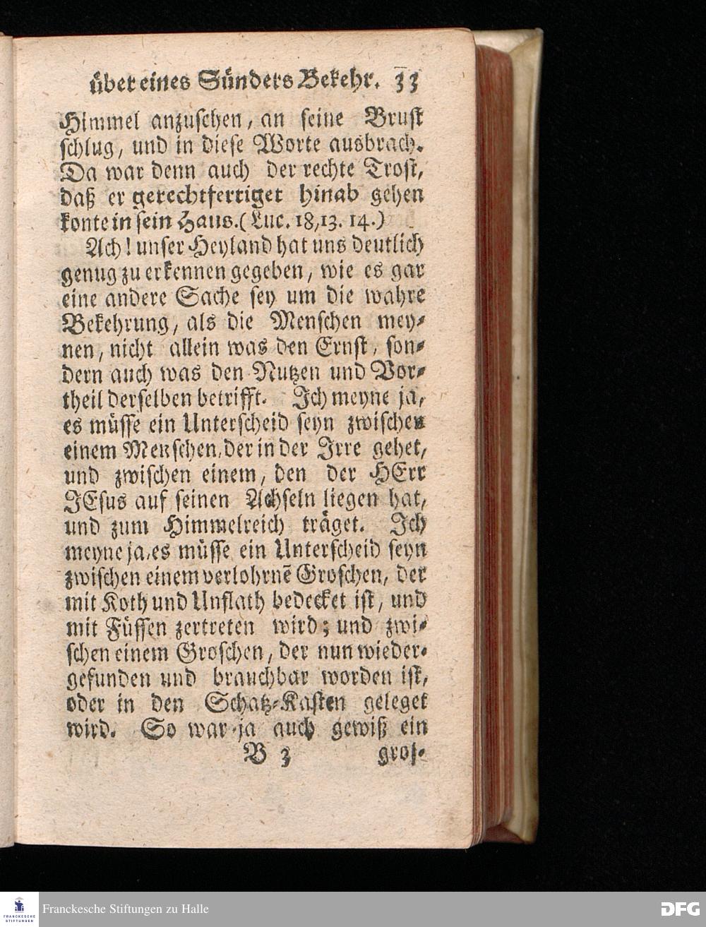 Die Freude im Himmel über eines Sünders Bekehrung, Am 3.Soñt.nach Trinit.1720. In einer über den ordentlichen Evangelisch.Text Luc.XV, 1=16. In der Kirche zu St.Petri in Cölln an der Spree auf geschehenen Antrag gehaltenen Predigt betrachtet und zum Druck überlassen von August Hermann Francken, S.Theol.Prof.Past. Vlric & Gymn. Schol. Andere Auflage. Der Schul=Jugend in den Glauchischen Anstalten nach gehaltenem Examine ausgetheilet den 24ten Aug.1720. HALLE, in Verlegung des Wäysenhause. 1724.