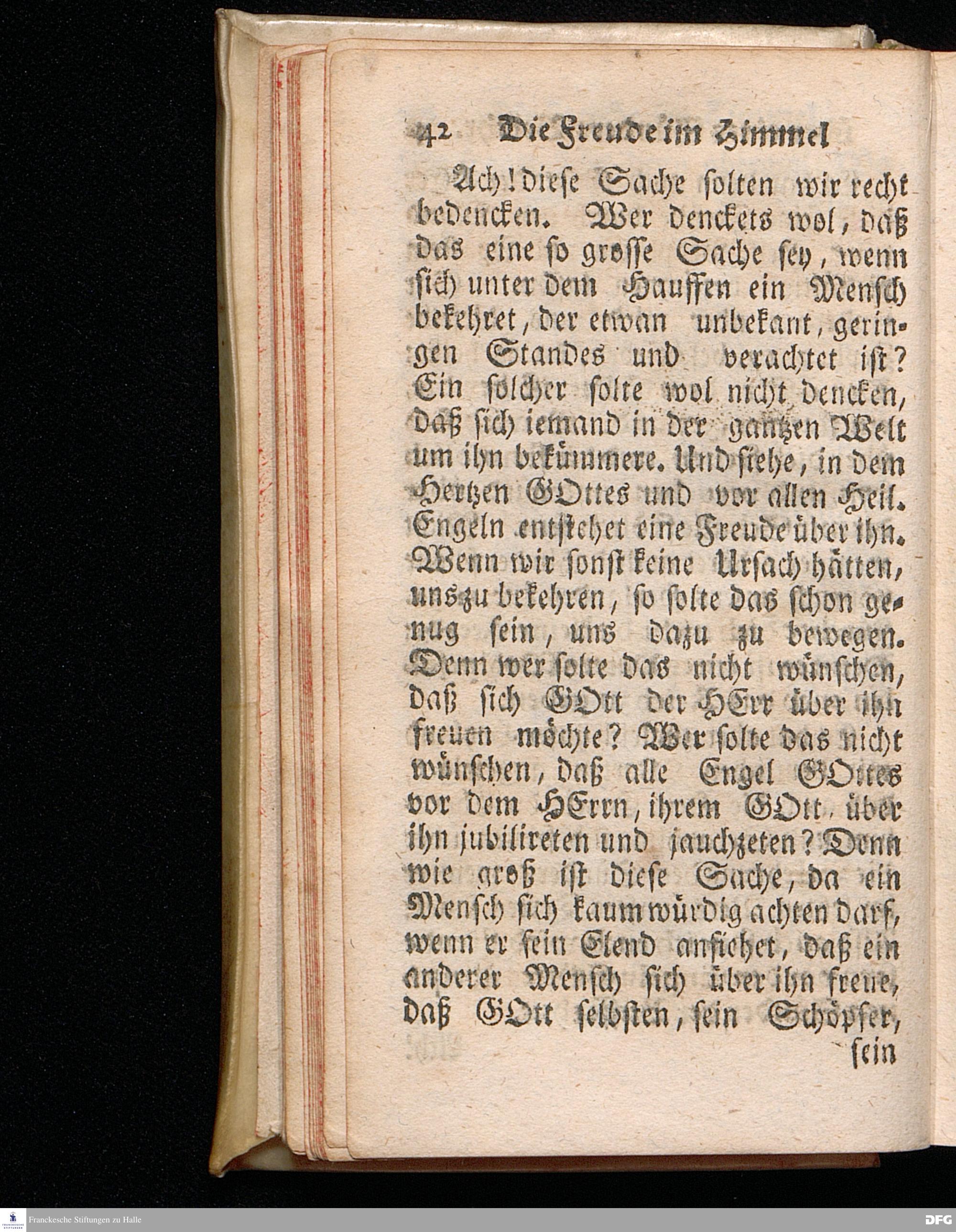 Die Freude im Himmel über eines Sünders Bekehrung, Am 3.Soñt.nach Trinit.1720. In einer über den ordentlichen Evangelisch.Text Luc.XV, 1=16. In der Kirche zu St.Petri in Cölln an der Spree auf geschehenen Antrag gehaltenen Predigt betrachtet und zum Druck überlassen von August Hermann Francken, S.Theol.Prof.Past. Vlric & Gymn. Schol. Andere Auflage. Der Schul=Jugend in den Glauchischen Anstalten nach gehaltenem Examine ausgetheilet den 24ten Aug.1720. HALLE, in Verlegung des Wäysenhause. 1724.