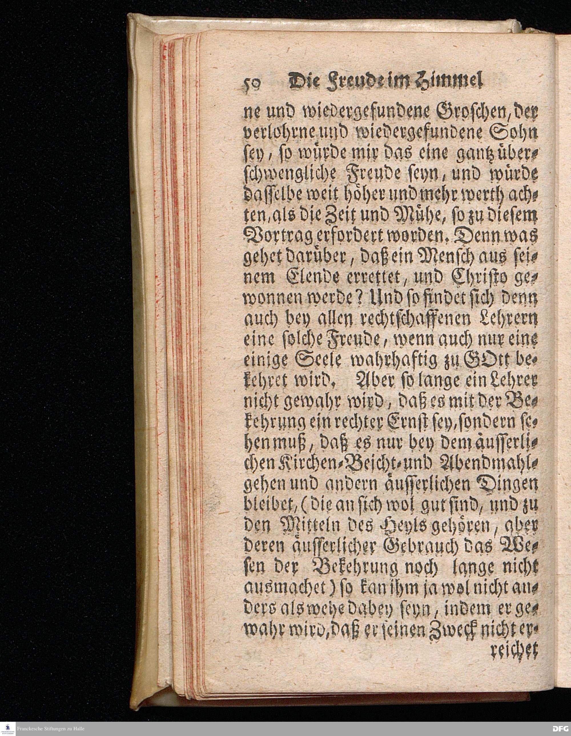 Die Freude im Himmel über eines Sünders Bekehrung, Am 3.Soñt.nach Trinit.1720. In einer über den ordentlichen Evangelisch.Text Luc.XV, 1=16. In der Kirche zu St.Petri in Cölln an der Spree auf geschehenen Antrag gehaltenen Predigt betrachtet und zum Druck überlassen von August Hermann Francken, S.Theol.Prof.Past. Vlric & Gymn. Schol. Andere Auflage. Der Schul=Jugend in den Glauchischen Anstalten nach gehaltenem Examine ausgetheilet den 24ten Aug.1720. HALLE, in Verlegung des Wäysenhause. 1724.
