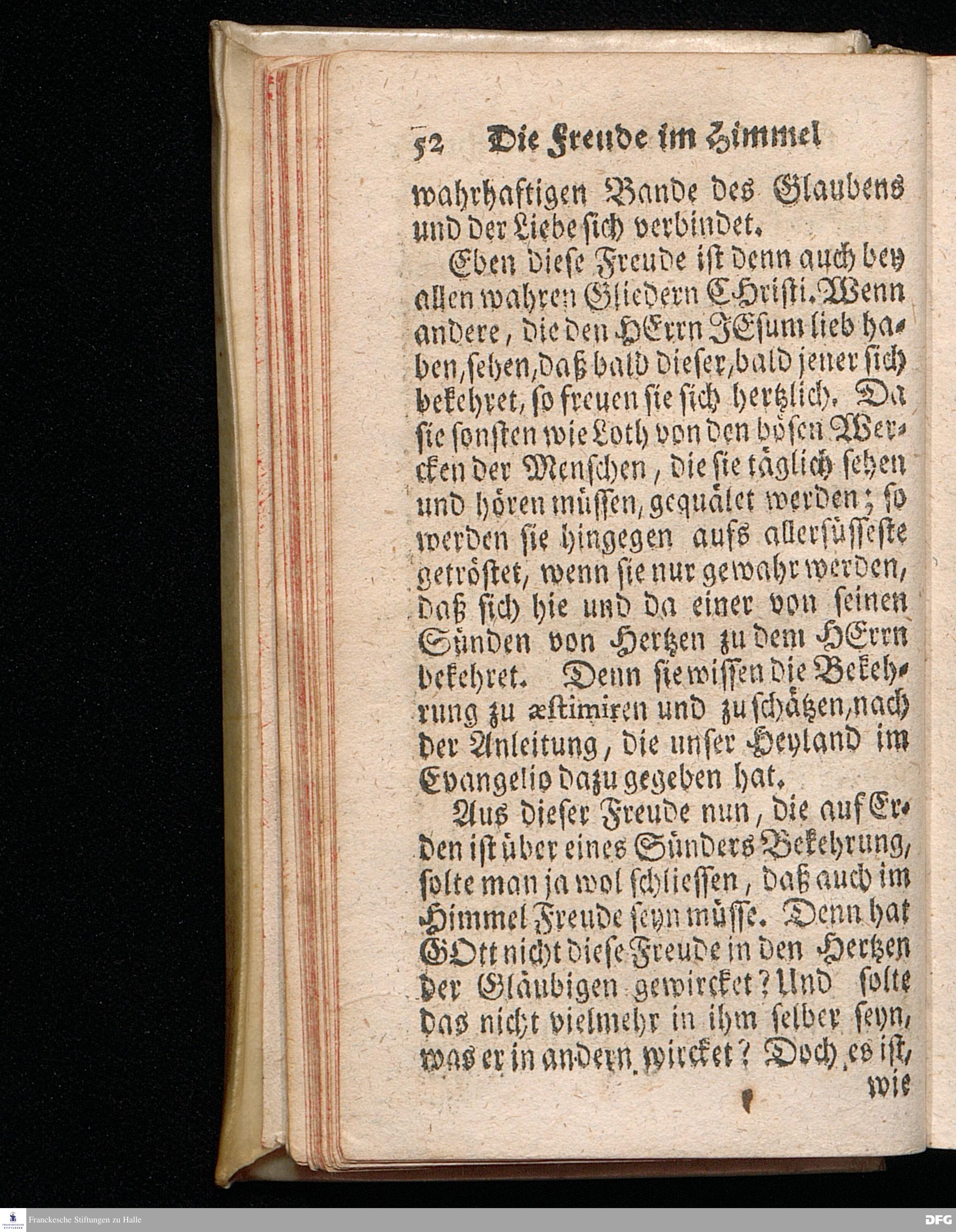 Die Freude im Himmel über eines Sünders Bekehrung, Am 3.Soñt.nach Trinit.1720. In einer über den ordentlichen Evangelisch.Text Luc.XV, 1=16. In der Kirche zu St.Petri in Cölln an der Spree auf geschehenen Antrag gehaltenen Predigt betrachtet und zum Druck überlassen von August Hermann Francken, S.Theol.Prof.Past. Vlric & Gymn. Schol. Andere Auflage. Der Schul=Jugend in den Glauchischen Anstalten nach gehaltenem Examine ausgetheilet den 24ten Aug.1720. HALLE, in Verlegung des Wäysenhause. 1724.
