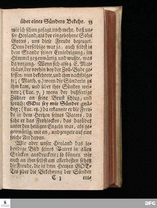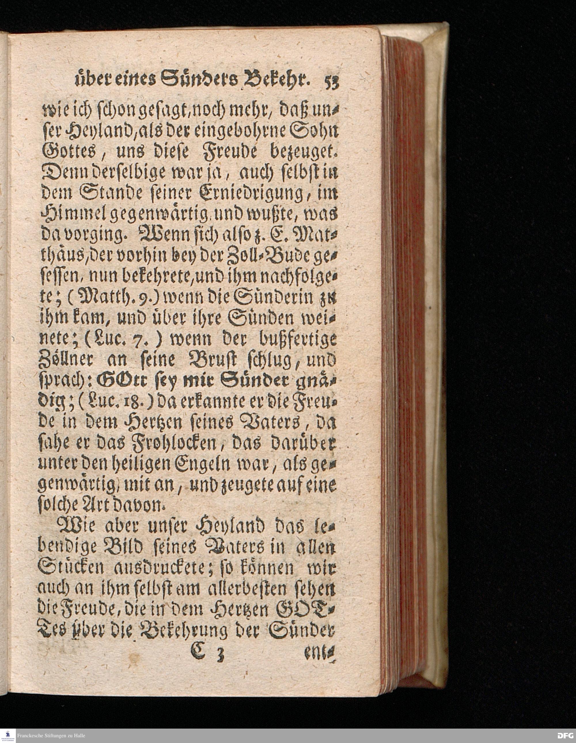 Die Freude im Himmel über eines Sünders Bekehrung, Am 3.Soñt.nach Trinit.1720. In einer über den ordentlichen Evangelisch.Text Luc.XV, 1=16. In der Kirche zu St.Petri in Cölln an der Spree auf geschehenen Antrag gehaltenen Predigt betrachtet und zum Druck überlassen von August Hermann Francken, S.Theol.Prof.Past. Vlric & Gymn. Schol. Andere Auflage. Der Schul=Jugend in den Glauchischen Anstalten nach gehaltenem Examine ausgetheilet den 24ten Aug.1720. HALLE, in Verlegung des Wäysenhause. 1724.