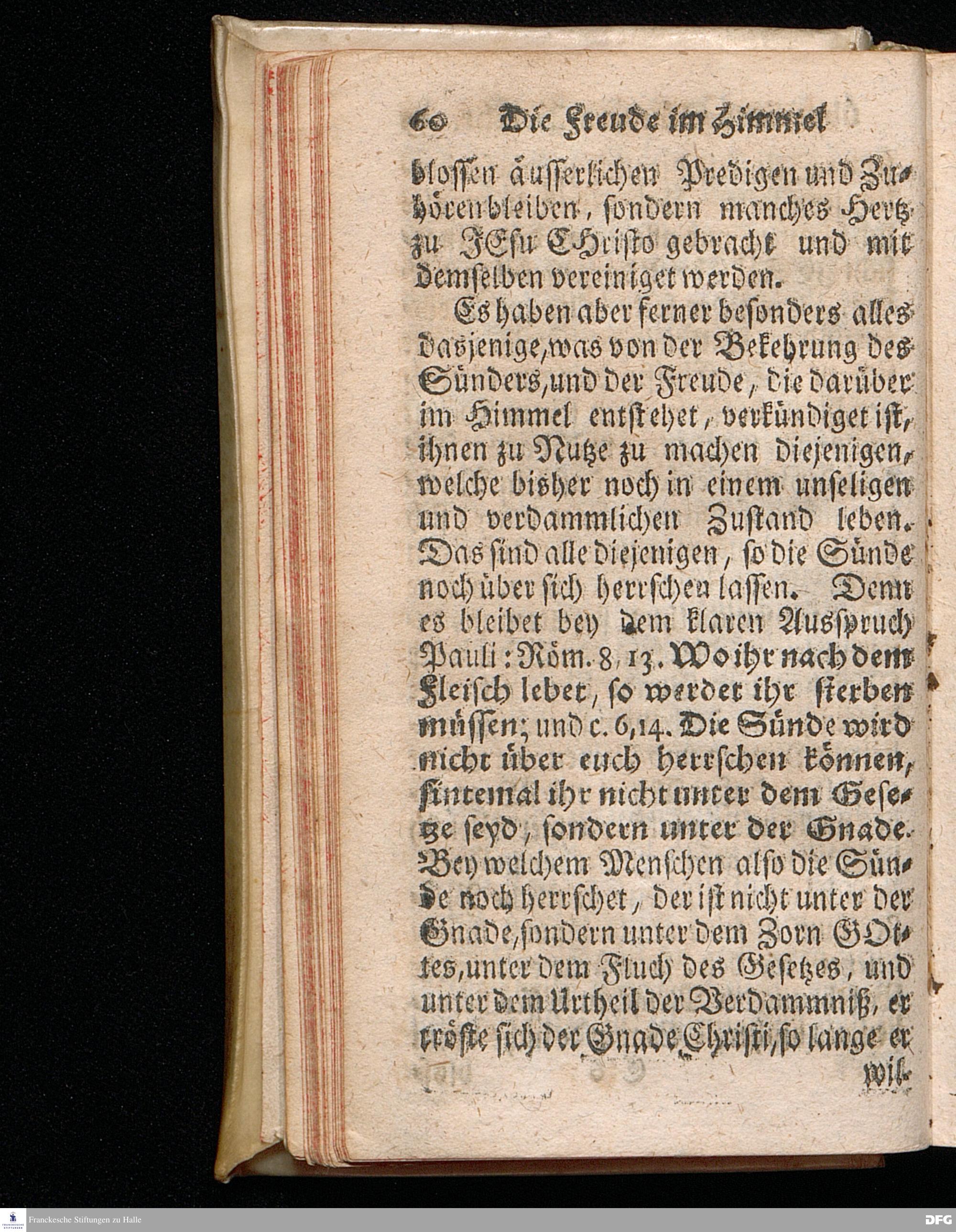 Die Freude im Himmel über eines Sünders Bekehrung, Am 3.Soñt.nach Trinit.1720. In einer über den ordentlichen Evangelisch.Text Luc.XV, 1=16. In der Kirche zu St.Petri in Cölln an der Spree auf geschehenen Antrag gehaltenen Predigt betrachtet und zum Druck überlassen von August Hermann Francken, S.Theol.Prof.Past. Vlric & Gymn. Schol. Andere Auflage. Der Schul=Jugend in den Glauchischen Anstalten nach gehaltenem Examine ausgetheilet den 24ten Aug.1720. HALLE, in Verlegung des Wäysenhause. 1724.