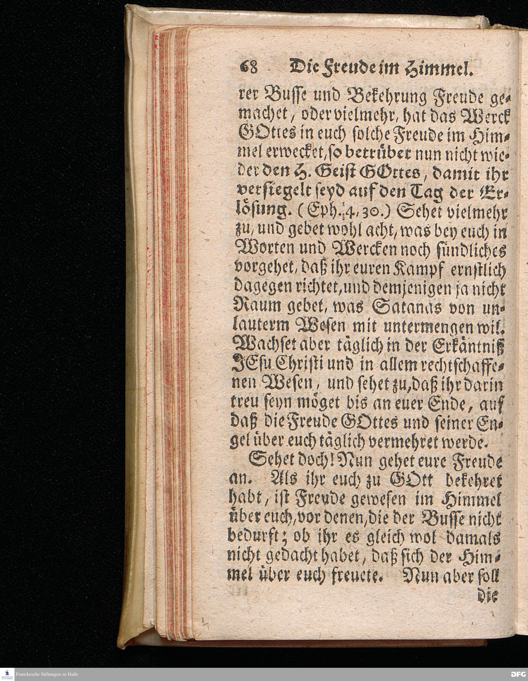 Die Freude im Himmel über eines Sünders Bekehrung, Am 3.Soñt.nach Trinit.1720. In einer über den ordentlichen Evangelisch.Text Luc.XV, 1=16. In der Kirche zu St.Petri in Cölln an der Spree auf geschehenen Antrag gehaltenen Predigt betrachtet und zum Druck überlassen von August Hermann Francken, S.Theol.Prof.Past. Vlric & Gymn. Schol. Andere Auflage. Der Schul=Jugend in den Glauchischen Anstalten nach gehaltenem Examine ausgetheilet den 24ten Aug.1720. HALLE, in Verlegung des Wäysenhause. 1724.