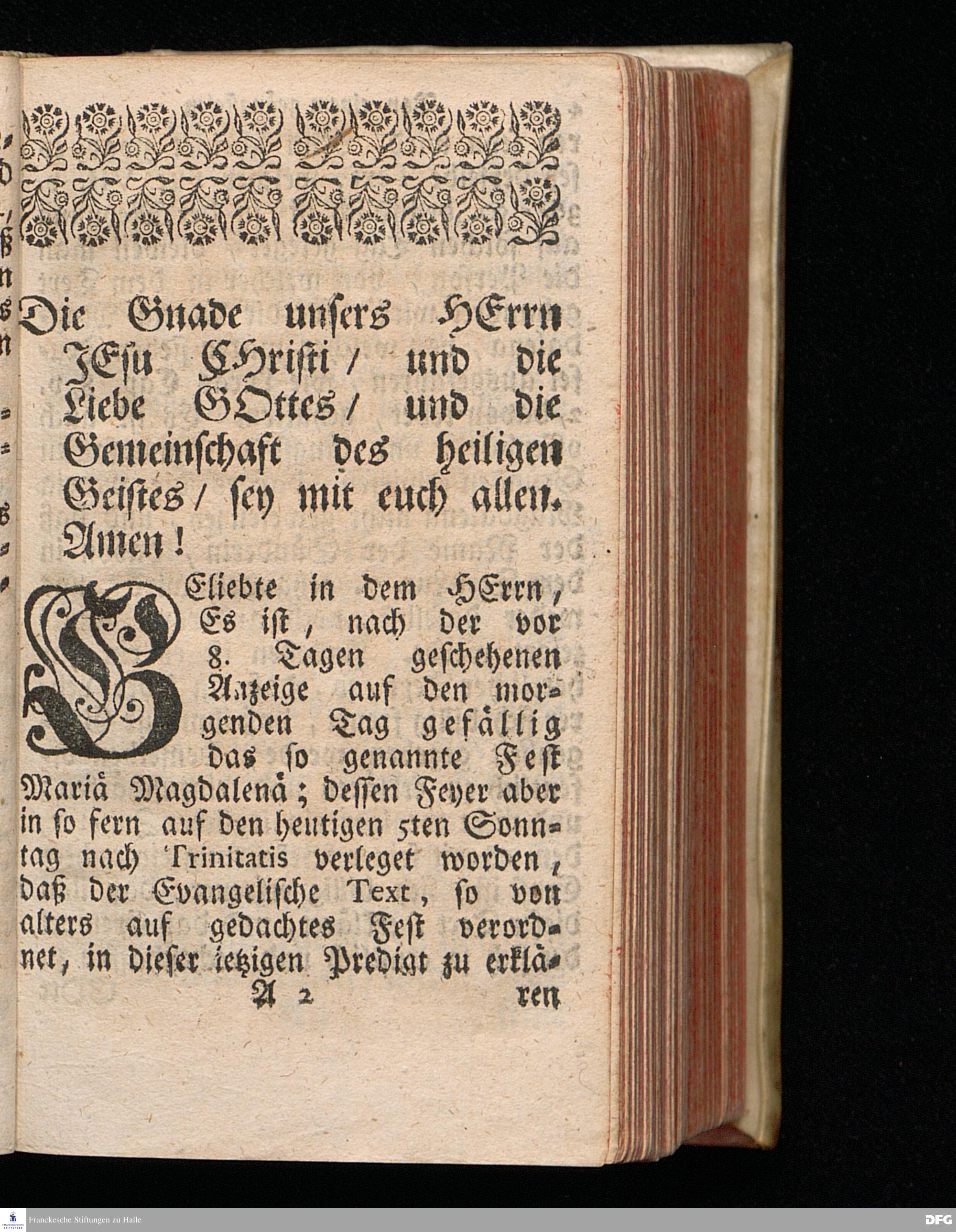 Das der Sünden wegen Geängstete und Zuschlagene Hertz Aus dem Evangelischen Text Luc.VII, 36--50. Welcher sonst auf den Tag Mar.Magdal.verordnet ist, Am V.Sonntag nach Trinitatis. ANNO 1715. In der Ulrichs=Kirchen zu Halle vorgestellet von August Hermann Francken / S.Th.Pr.O.Past.Ulric.und des Gymnasii daselbst Scholarcha. Der Jugend in den Schulen des Wäysenhauses Nach gehaltenem EXAMINE dem 17.Augusti gedachten Jahrs ausgetheilet. andere Auflage. HALLE in Verlegung des Wäysenhauses, 1723.