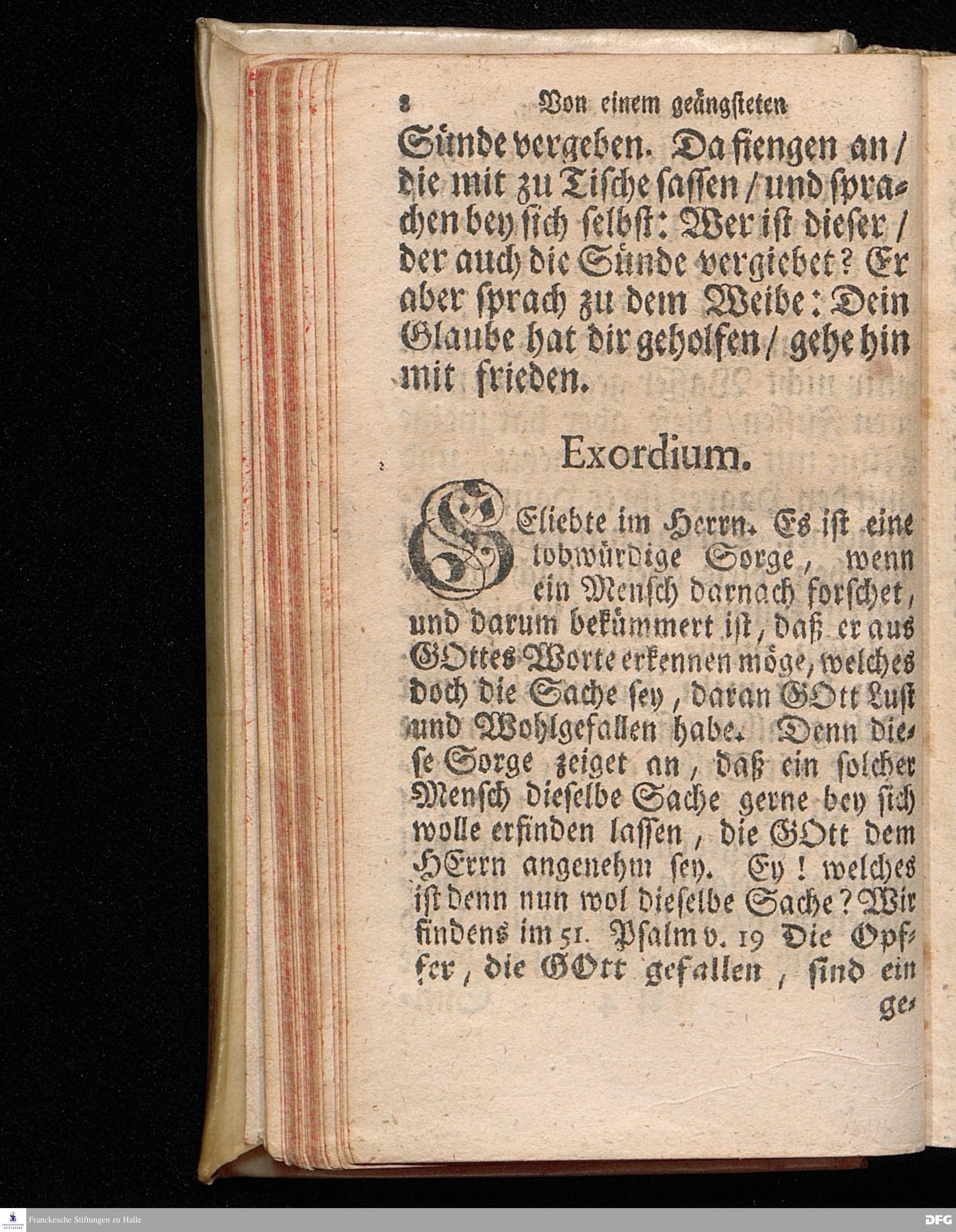Das der Sünden wegen Geängstete und Zuschlagene Hertz Aus dem Evangelischen Text Luc.VII, 36--50. Welcher sonst auf den Tag Mar.Magdal.verordnet ist, Am V.Sonntag nach Trinitatis. ANNO 1715. In der Ulrichs=Kirchen zu Halle vorgestellet von August Hermann Francken / S.Th.Pr.O.Past.Ulric.und des Gymnasii daselbst Scholarcha. Der Jugend in den Schulen des Wäysenhauses Nach gehaltenem EXAMINE dem 17.Augusti gedachten Jahrs ausgetheilet. andere Auflage. HALLE in Verlegung des Wäysenhauses, 1723.