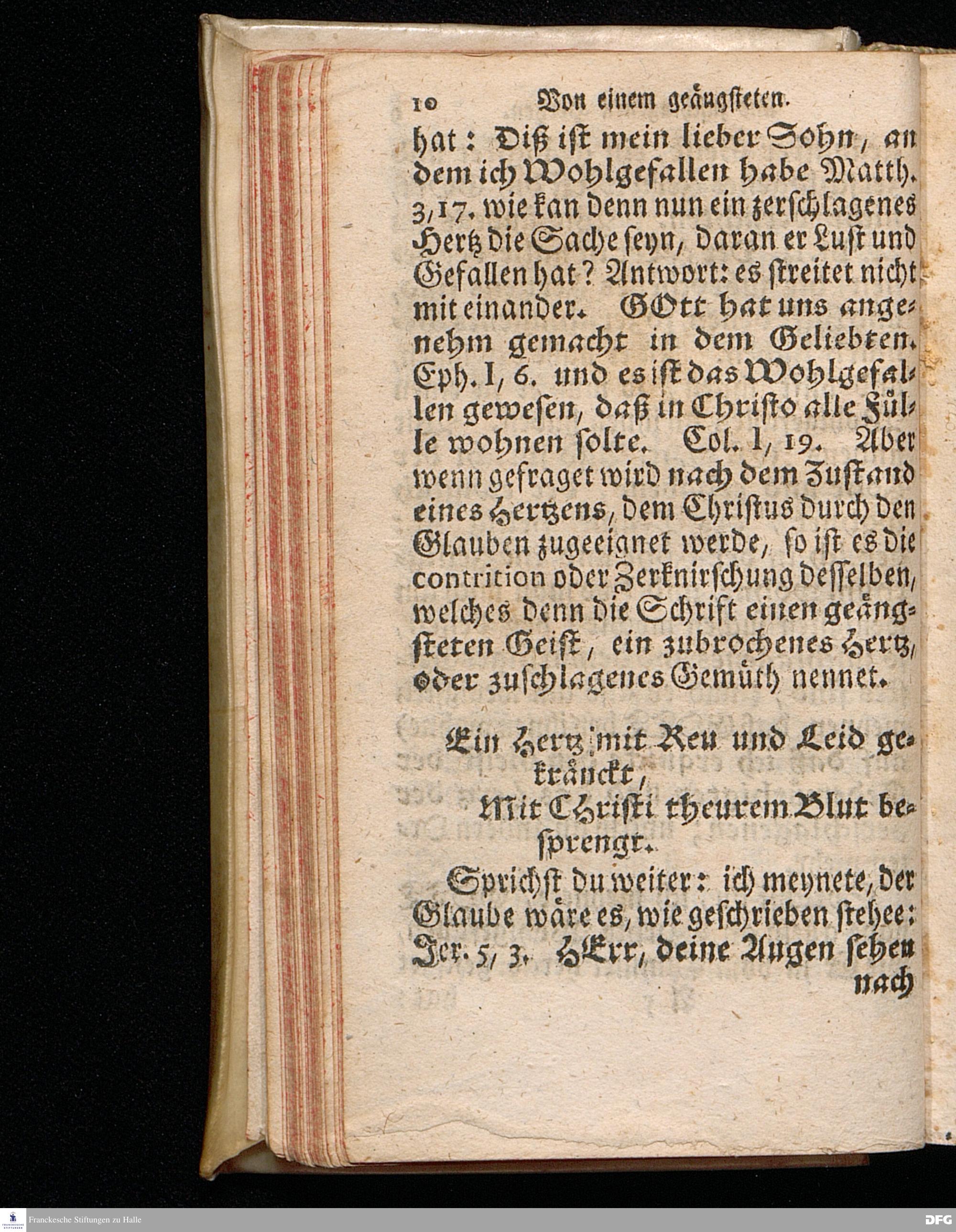 Das der Sünden wegen Geängstete und Zuschlagene Hertz Aus dem Evangelischen Text Luc.VII, 36--50. Welcher sonst auf den Tag Mar.Magdal.verordnet ist, Am V.Sonntag nach Trinitatis. ANNO 1715. In der Ulrichs=Kirchen zu Halle vorgestellet von August Hermann Francken / S.Th.Pr.O.Past.Ulric.und des Gymnasii daselbst Scholarcha. Der Jugend in den Schulen des Wäysenhauses Nach gehaltenem EXAMINE dem 17.Augusti gedachten Jahrs ausgetheilet. andere Auflage. HALLE in Verlegung des Wäysenhauses, 1723.