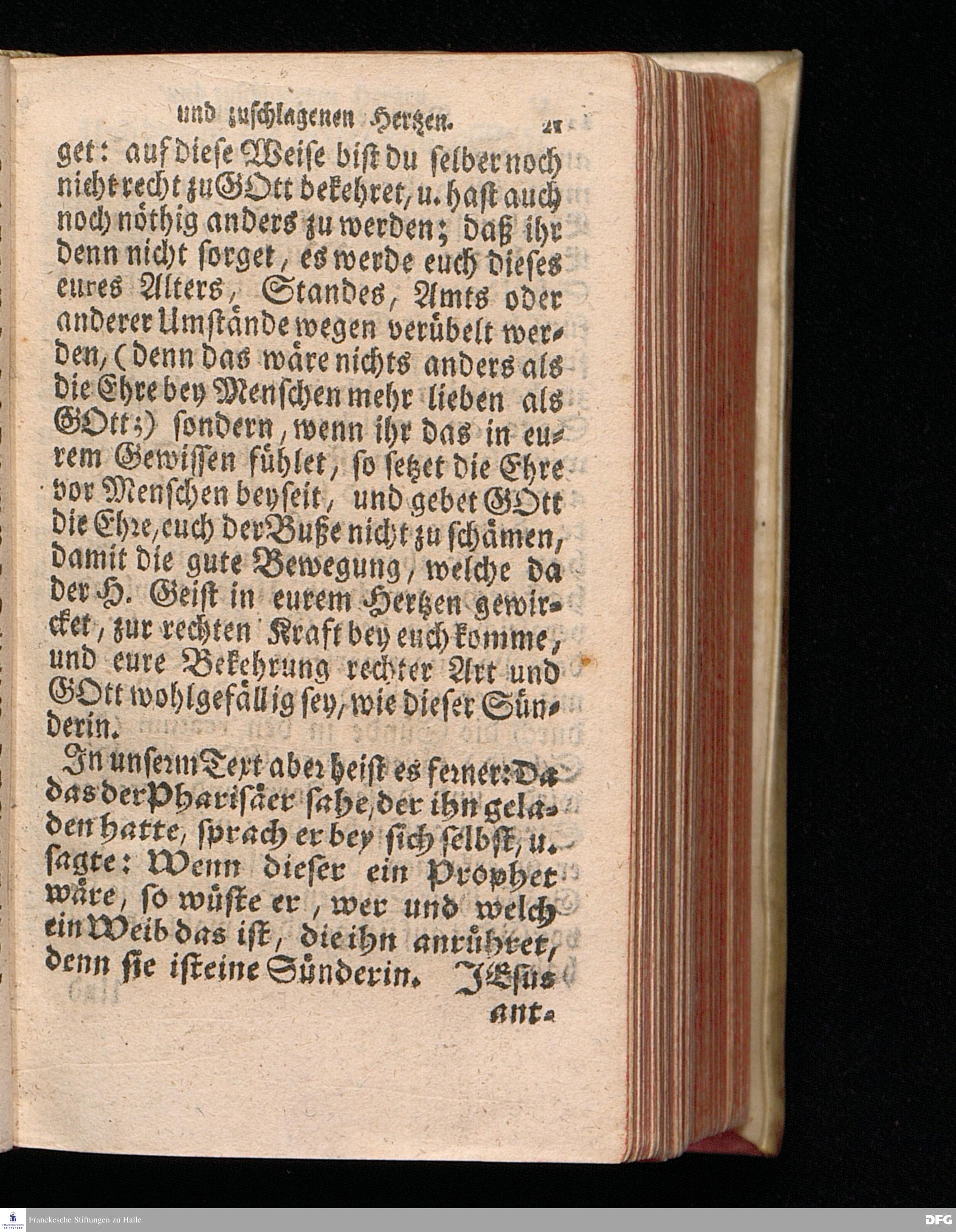 Das der Sünden wegen Geängstete und Zuschlagene Hertz Aus dem Evangelischen Text Luc.VII, 36--50. Welcher sonst auf den Tag Mar.Magdal.verordnet ist, Am V.Sonntag nach Trinitatis. ANNO 1715. In der Ulrichs=Kirchen zu Halle vorgestellet von August Hermann Francken / S.Th.Pr.O.Past.Ulric.und des Gymnasii daselbst Scholarcha. Der Jugend in den Schulen des Wäysenhauses Nach gehaltenem EXAMINE dem 17.Augusti gedachten Jahrs ausgetheilet. andere Auflage. HALLE in Verlegung des Wäysenhauses, 1723.