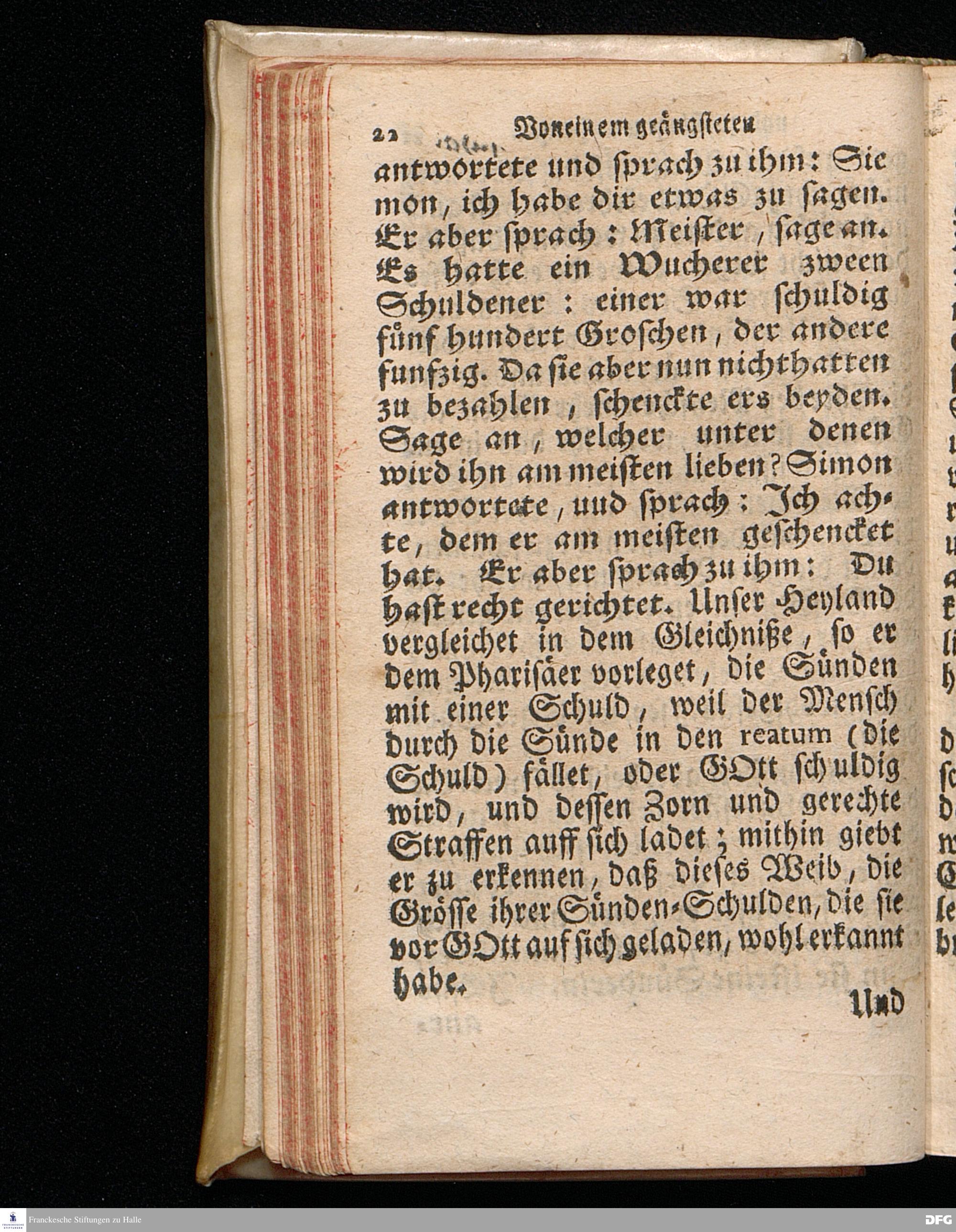 Das der Sünden wegen Geängstete und Zuschlagene Hertz Aus dem Evangelischen Text Luc.VII, 36--50. Welcher sonst auf den Tag Mar.Magdal.verordnet ist, Am V.Sonntag nach Trinitatis. ANNO 1715. In der Ulrichs=Kirchen zu Halle vorgestellet von August Hermann Francken / S.Th.Pr.O.Past.Ulric.und des Gymnasii daselbst Scholarcha. Der Jugend in den Schulen des Wäysenhauses Nach gehaltenem EXAMINE dem 17.Augusti gedachten Jahrs ausgetheilet. andere Auflage. HALLE in Verlegung des Wäysenhauses, 1723.