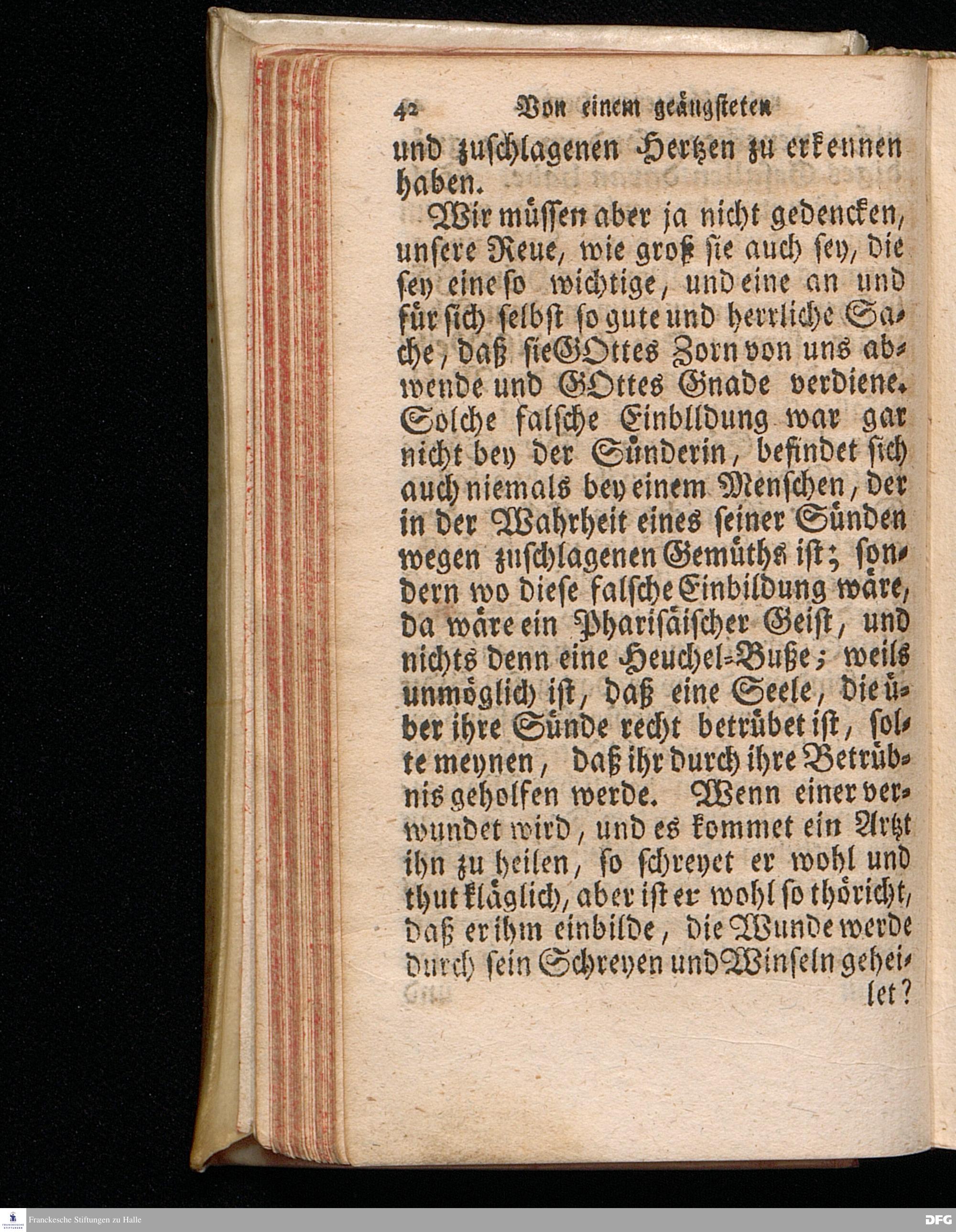 Das der Sünden wegen Geängstete und Zuschlagene Hertz Aus dem Evangelischen Text Luc.VII, 36--50. Welcher sonst auf den Tag Mar.Magdal.verordnet ist, Am V.Sonntag nach Trinitatis. ANNO 1715. In der Ulrichs=Kirchen zu Halle vorgestellet von August Hermann Francken / S.Th.Pr.O.Past.Ulric.und des Gymnasii daselbst Scholarcha. Der Jugend in den Schulen des Wäysenhauses Nach gehaltenem EXAMINE dem 17.Augusti gedachten Jahrs ausgetheilet. andere Auflage. HALLE in Verlegung des Wäysenhauses, 1723.