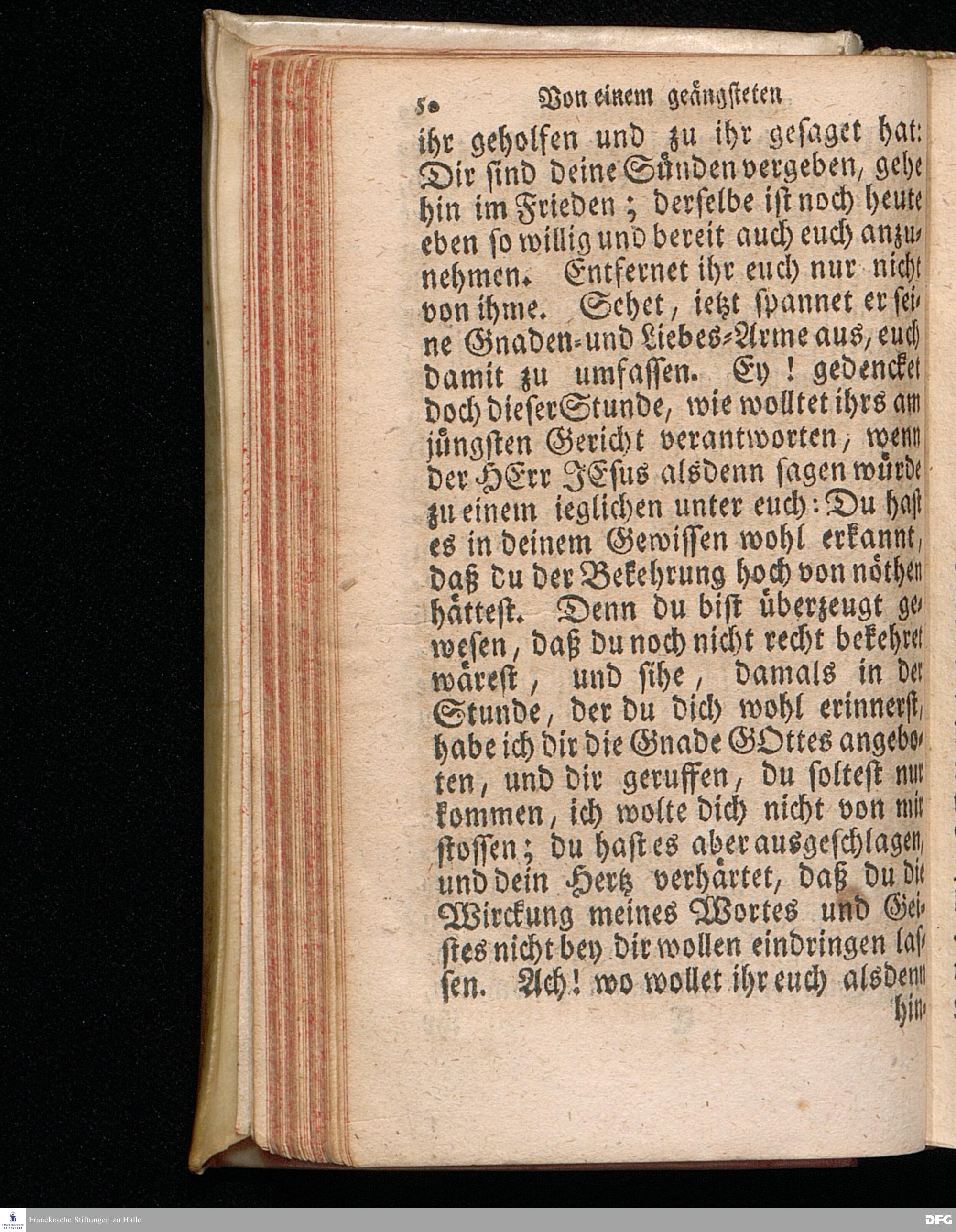 Das der Sünden wegen Geängstete und Zuschlagene Hertz Aus dem Evangelischen Text Luc.VII, 36--50. Welcher sonst auf den Tag Mar.Magdal.verordnet ist, Am V.Sonntag nach Trinitatis. ANNO 1715. In der Ulrichs=Kirchen zu Halle vorgestellet von August Hermann Francken / S.Th.Pr.O.Past.Ulric.und des Gymnasii daselbst Scholarcha. Der Jugend in den Schulen des Wäysenhauses Nach gehaltenem EXAMINE dem 17.Augusti gedachten Jahrs ausgetheilet. andere Auflage. HALLE in Verlegung des Wäysenhauses, 1723.