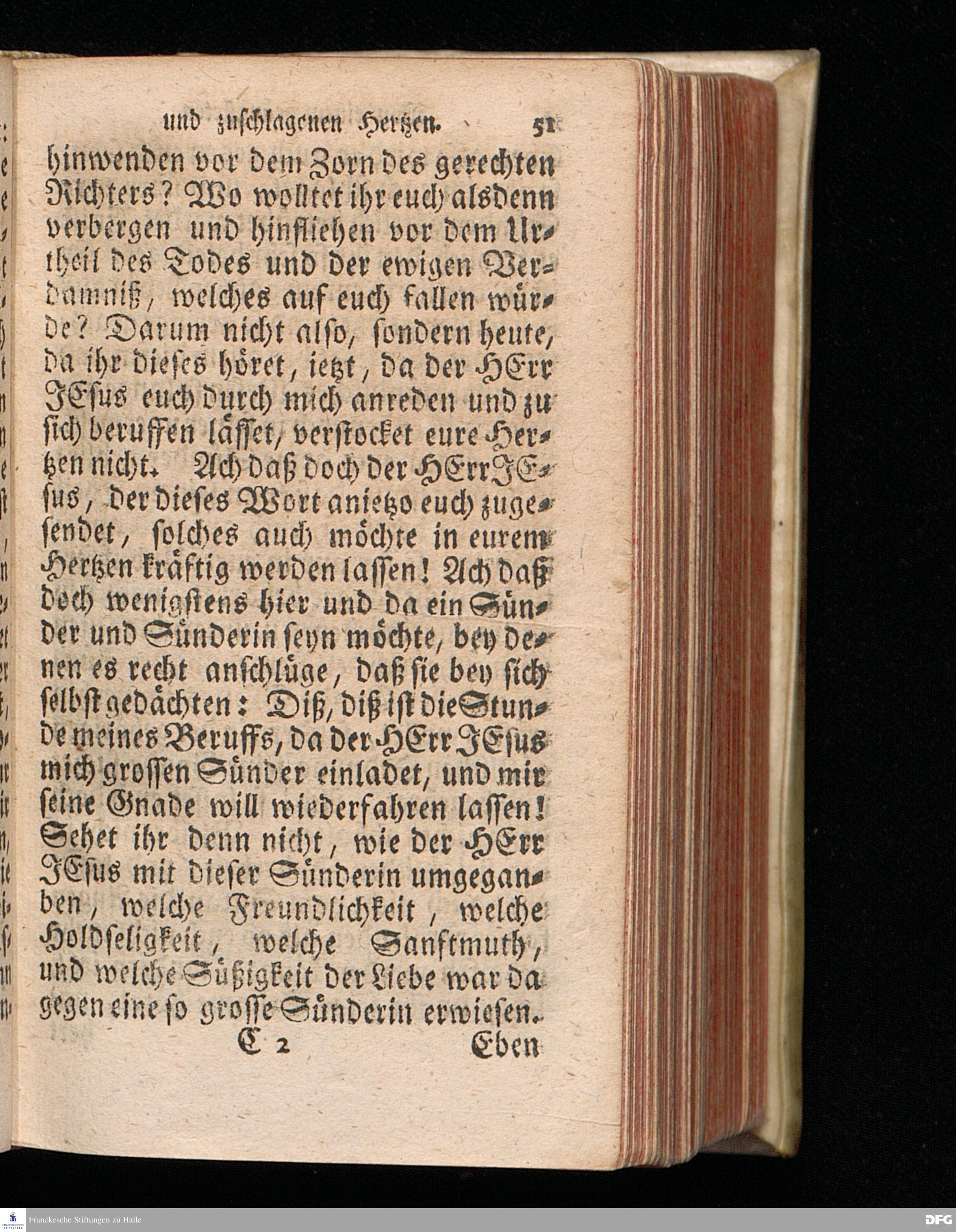 Das der Sünden wegen Geängstete und Zuschlagene Hertz Aus dem Evangelischen Text Luc.VII, 36--50. Welcher sonst auf den Tag Mar.Magdal.verordnet ist, Am V.Sonntag nach Trinitatis. ANNO 1715. In der Ulrichs=Kirchen zu Halle vorgestellet von August Hermann Francken / S.Th.Pr.O.Past.Ulric.und des Gymnasii daselbst Scholarcha. Der Jugend in den Schulen des Wäysenhauses Nach gehaltenem EXAMINE dem 17.Augusti gedachten Jahrs ausgetheilet. andere Auflage. HALLE in Verlegung des Wäysenhauses, 1723.