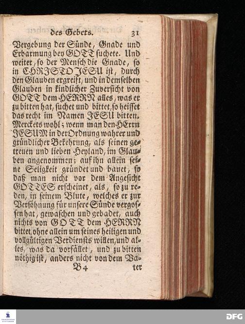 Des Gebets hohe Nothwendigkeit, wahre Beschaffenheit, und herrliche Frucht, Am Sonntage Rogate 1719. Aus Joh.16, 23-30. In einer zu Mörseburg von der Hochfürstlichen Herrschaft gnädigst aufgetragenen, und in der Domkirchen daselbst abgelegten Predigt vorgestellet, und auf Erfordern zum Druck gegeben von August Hermann Francken / S.Th.Prof.& Past.zu S.Ulrich, und des Gymnasii Scholarcha. Andere Auflage. HALLE In Verlegung des Wäysenhauses, 1723.