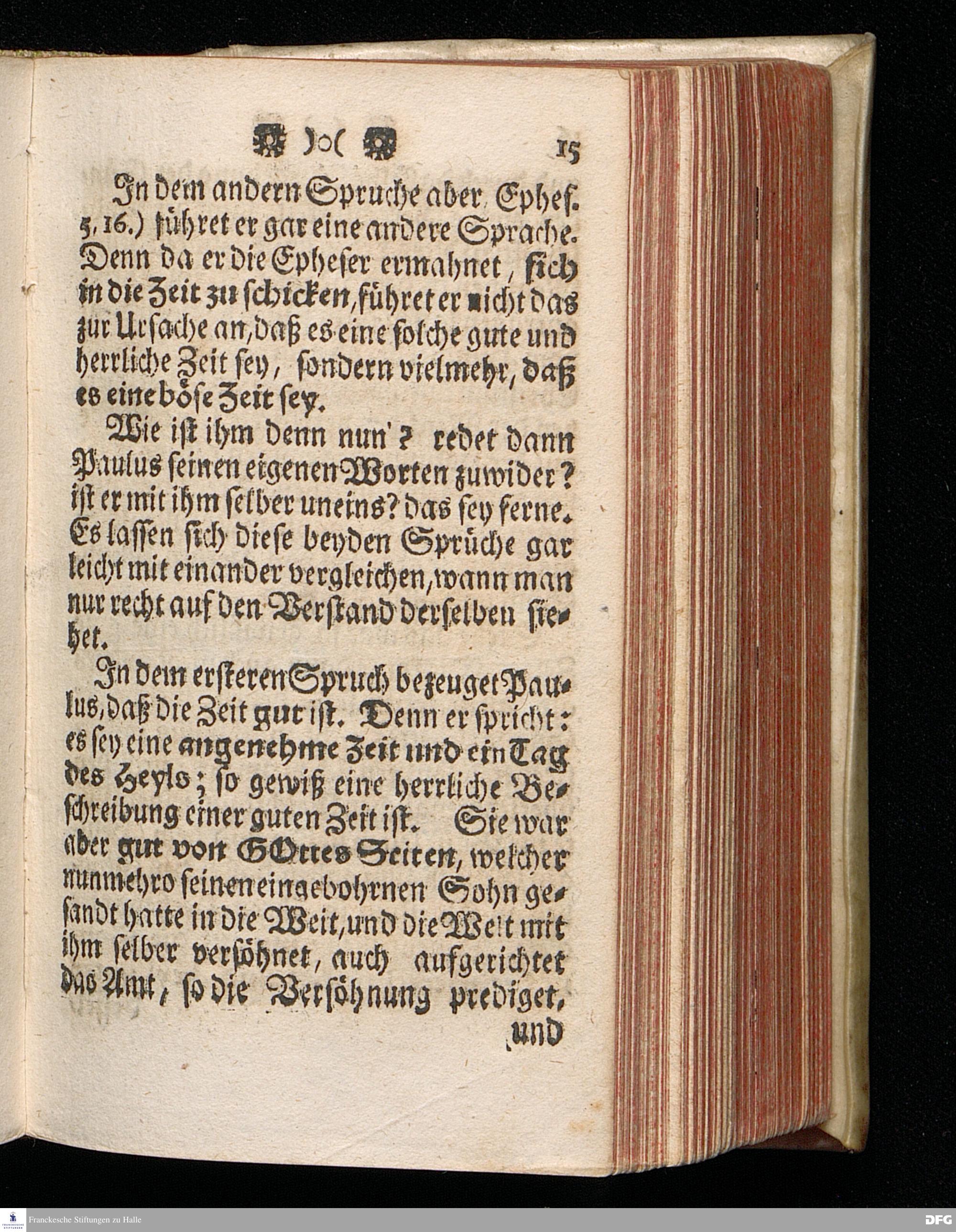 Der rechte Gebrauch der Zeit / So fern dieselbe gut, und so fern sie böse ist, Aus 2 Cor.VI, 2. und Eph.V, 16. vorgestellet, Und Auf die Beschaffenheit der ietzigen Zeiten appliciret, Den 4.Januar. als zum Anfang des 1713. Jahrs, Im Waysen=Hause zu Glaucha vor Halle, Von August Hermann Francken, S.Th.P.Ord.Past. Vlr.& Schol. Dritte Auflage. HALLE, in Verlegung des Waysenhauses. 1724.