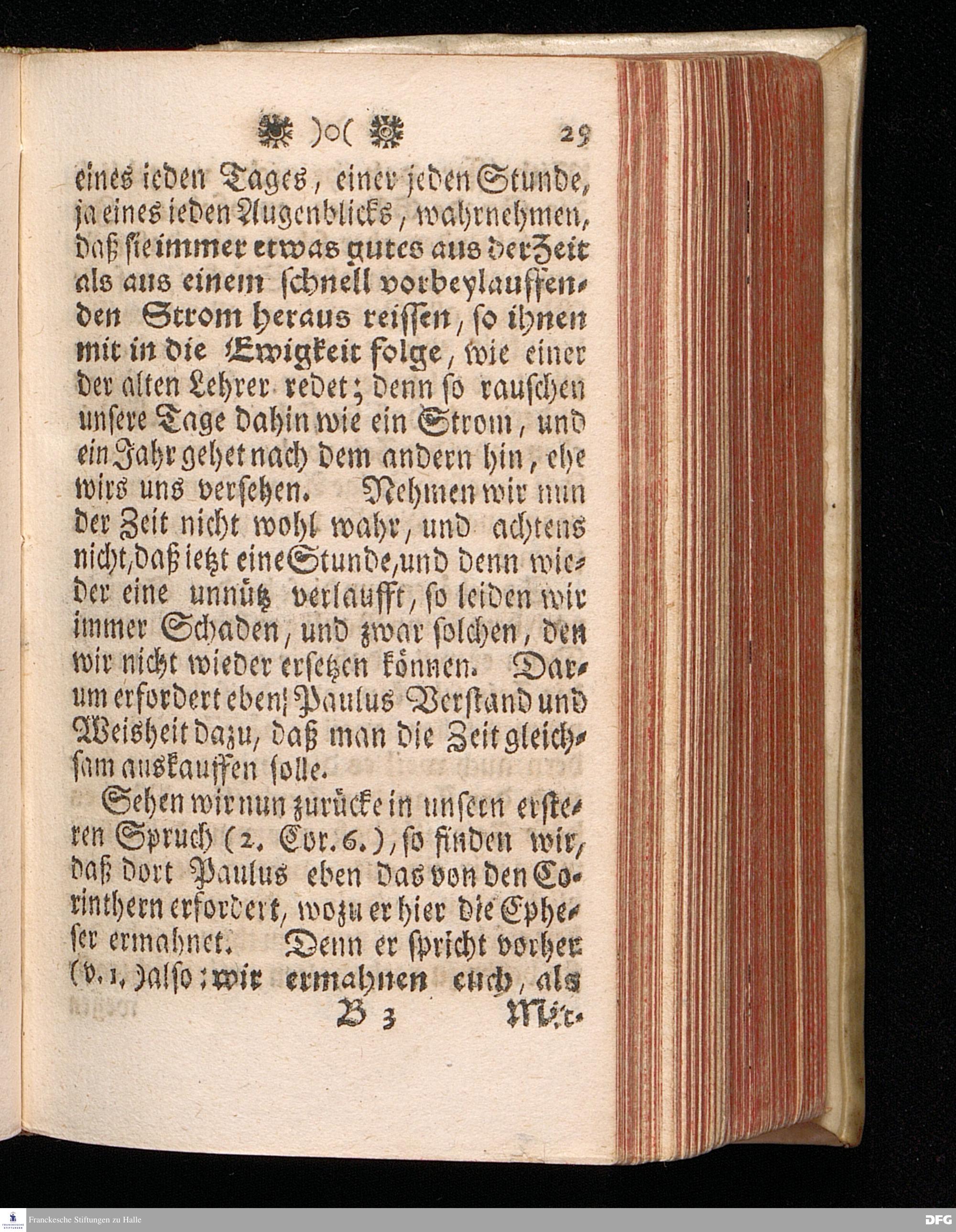 Der rechte Gebrauch der Zeit / So fern dieselbe gut, und so fern sie böse ist, Aus 2 Cor.VI, 2. und Eph.V, 16. vorgestellet, Und Auf die Beschaffenheit der ietzigen Zeiten appliciret, Den 4.Januar. als zum Anfang des 1713. Jahrs, Im Waysen=Hause zu Glaucha vor Halle, Von August Hermann Francken, S.Th.P.Ord.Past. Vlr.& Schol. Dritte Auflage. HALLE, in Verlegung des Waysenhauses. 1724.