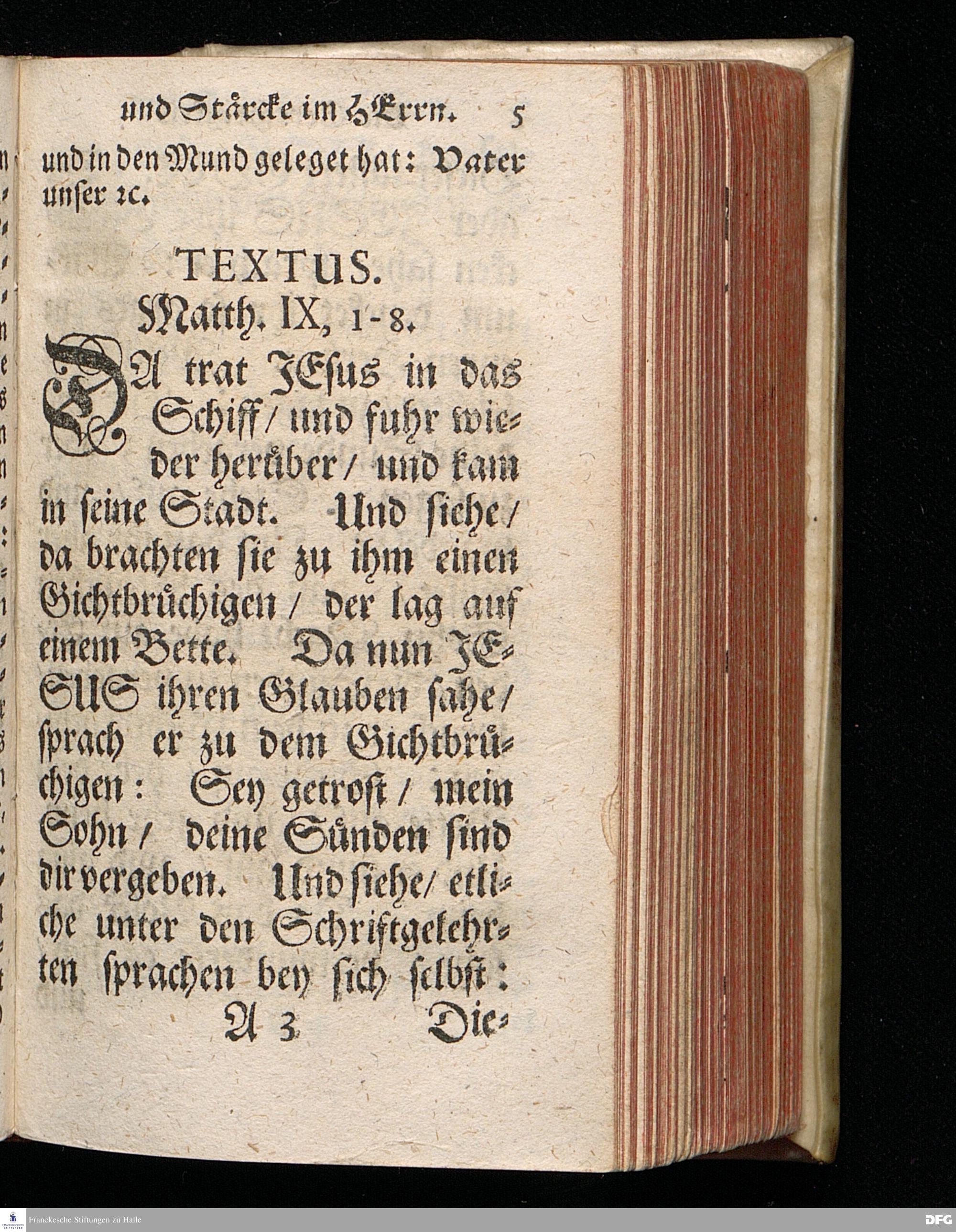 Die Gerechtigkeit und Stärcke im HErrn, am XIX.Sonntage nach Trinitatis 1720.aus dem ordentlichen Evangelio Matth. IX, 1-8. In einer vor S.Königl.Majest.in Preussen auf Deroselben allergnädigstem Befehl In der Schul=Kirche zu Halle gehaltenen und zum Druck beforderten Predigt vorgestellet von August Hermann Francken / S.Theolog.Prof.Past.Ulric.& Gymnasii Scholarcha. Andere Auflage. HALLE, Gedruckt im Wäysen=Hause. MDCCXXIII.