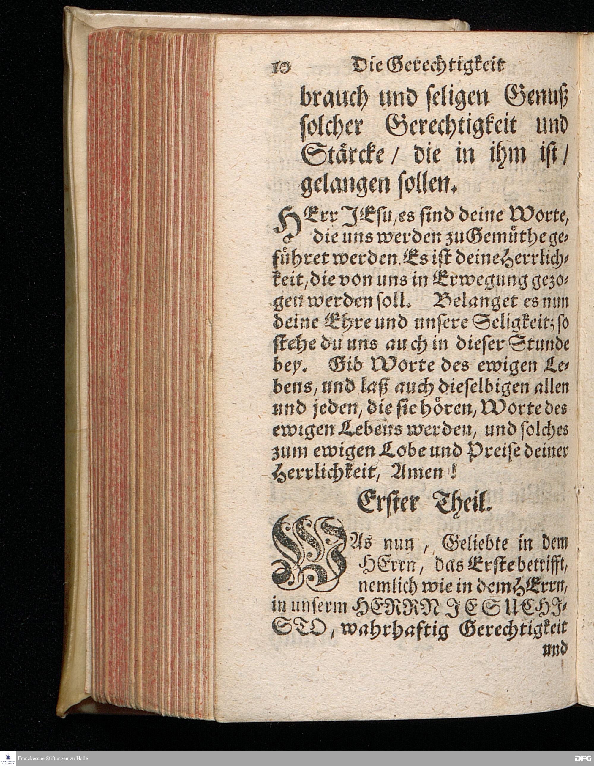 Die Gerechtigkeit und Stärcke im HErrn, am XIX.Sonntage nach Trinitatis 1720.aus dem ordentlichen Evangelio Matth. IX, 1-8. In einer vor S.Königl.Majest.in Preussen auf Deroselben allergnädigstem Befehl In der Schul=Kirche zu Halle gehaltenen und zum Druck beforderten Predigt vorgestellet von August Hermann Francken / S.Theolog.Prof.Past.Ulric.& Gymnasii Scholarcha. Andere Auflage. HALLE, Gedruckt im Wäysen=Hause. MDCCXXIII.