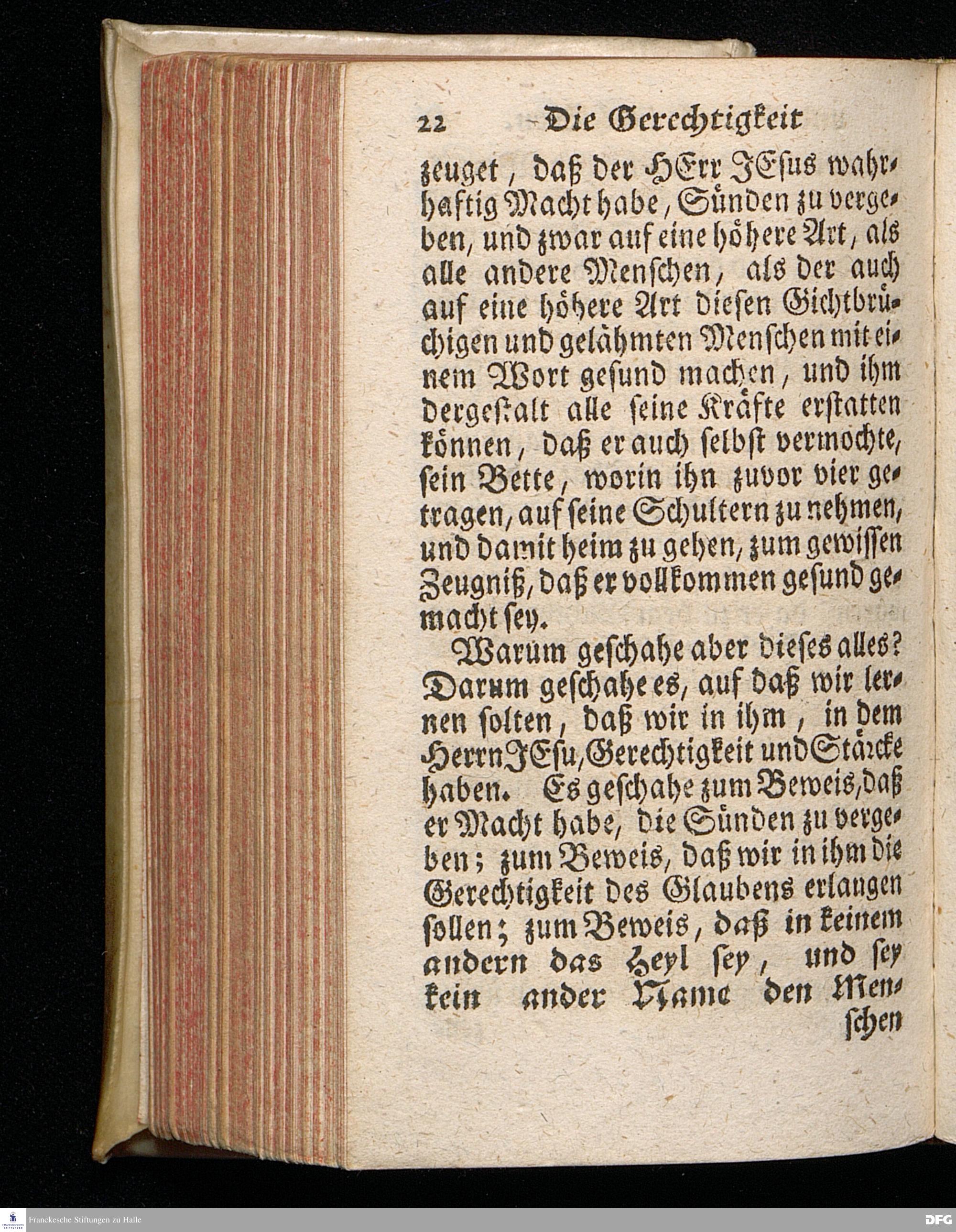 Die Gerechtigkeit und Stärcke im HErrn, am XIX.Sonntage nach Trinitatis 1720.aus dem ordentlichen Evangelio Matth. IX, 1-8. In einer vor S.Königl.Majest.in Preussen auf Deroselben allergnädigstem Befehl In der Schul=Kirche zu Halle gehaltenen und zum Druck beforderten Predigt vorgestellet von August Hermann Francken / S.Theolog.Prof.Past.Ulric.& Gymnasii Scholarcha. Andere Auflage. HALLE, Gedruckt im Wäysen=Hause. MDCCXXIII.