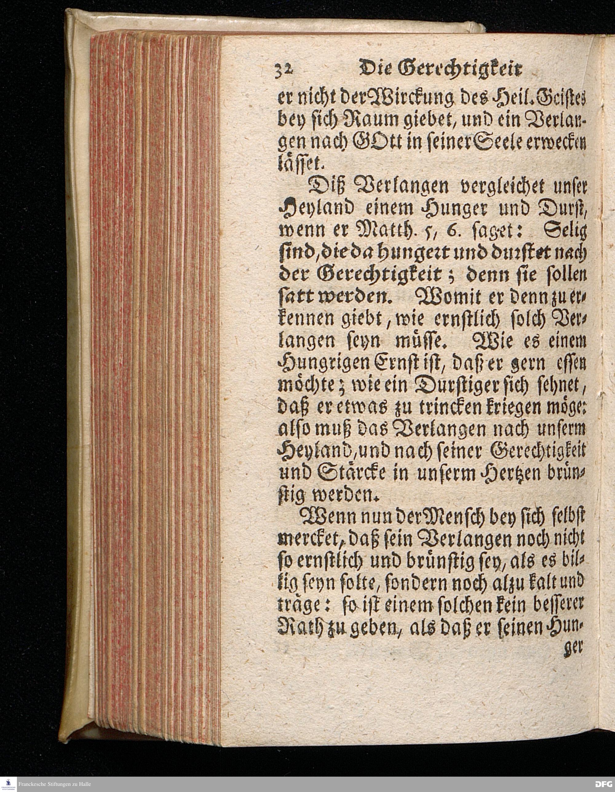 Die Gerechtigkeit und Stärcke im HErrn, am XIX.Sonntage nach Trinitatis 1720.aus dem ordentlichen Evangelio Matth. IX, 1-8. In einer vor S.Königl.Majest.in Preussen auf Deroselben allergnädigstem Befehl In der Schul=Kirche zu Halle gehaltenen und zum Druck beforderten Predigt vorgestellet von August Hermann Francken / S.Theolog.Prof.Past.Ulric.& Gymnasii Scholarcha. Andere Auflage. HALLE, Gedruckt im Wäysen=Hause. MDCCXXIII.