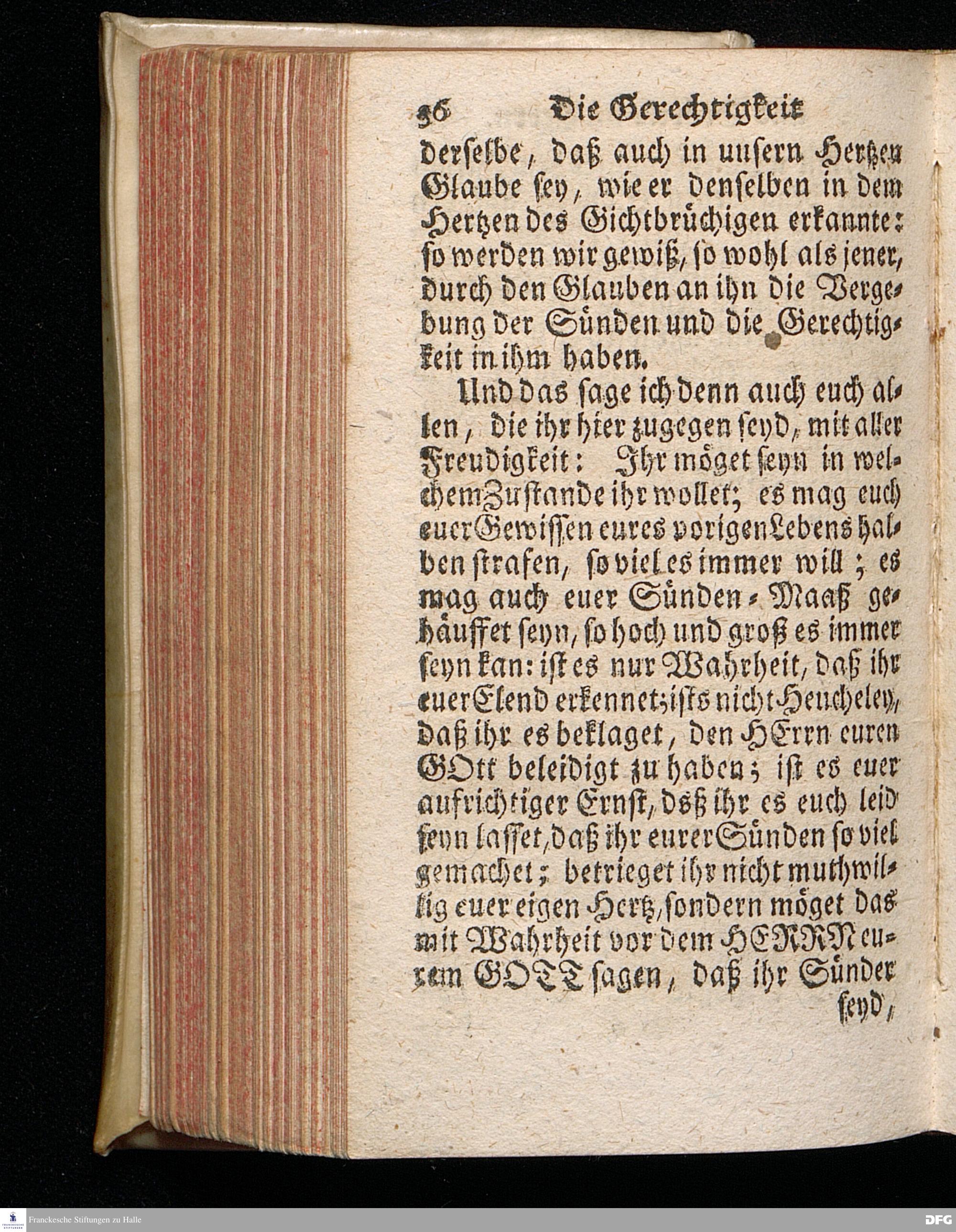 Die Gerechtigkeit und Stärcke im HErrn, am XIX.Sonntage nach Trinitatis 1720.aus dem ordentlichen Evangelio Matth. IX, 1-8. In einer vor S.Königl.Majest.in Preussen auf Deroselben allergnädigstem Befehl In der Schul=Kirche zu Halle gehaltenen und zum Druck beforderten Predigt vorgestellet von August Hermann Francken / S.Theolog.Prof.Past.Ulric.& Gymnasii Scholarcha. Andere Auflage. HALLE, Gedruckt im Wäysen=Hause. MDCCXXIII.