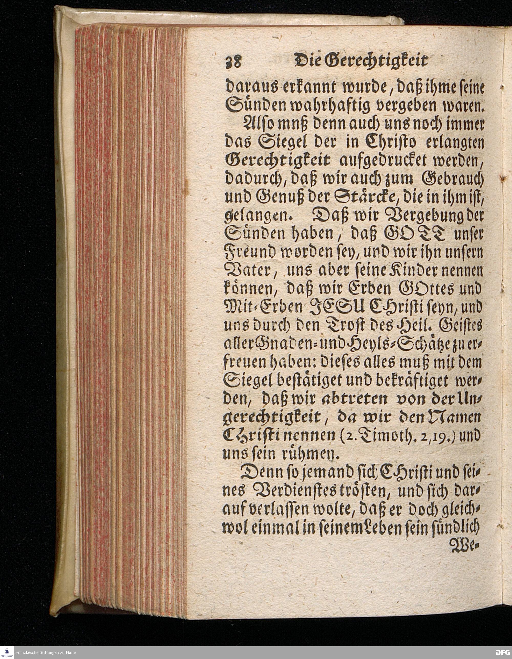 Die Gerechtigkeit und Stärcke im HErrn, am XIX.Sonntage nach Trinitatis 1720.aus dem ordentlichen Evangelio Matth. IX, 1-8. In einer vor S.Königl.Majest.in Preussen auf Deroselben allergnädigstem Befehl In der Schul=Kirche zu Halle gehaltenen und zum Druck beforderten Predigt vorgestellet von August Hermann Francken / S.Theolog.Prof.Past.Ulric.& Gymnasii Scholarcha. Andere Auflage. HALLE, Gedruckt im Wäysen=Hause. MDCCXXIII.