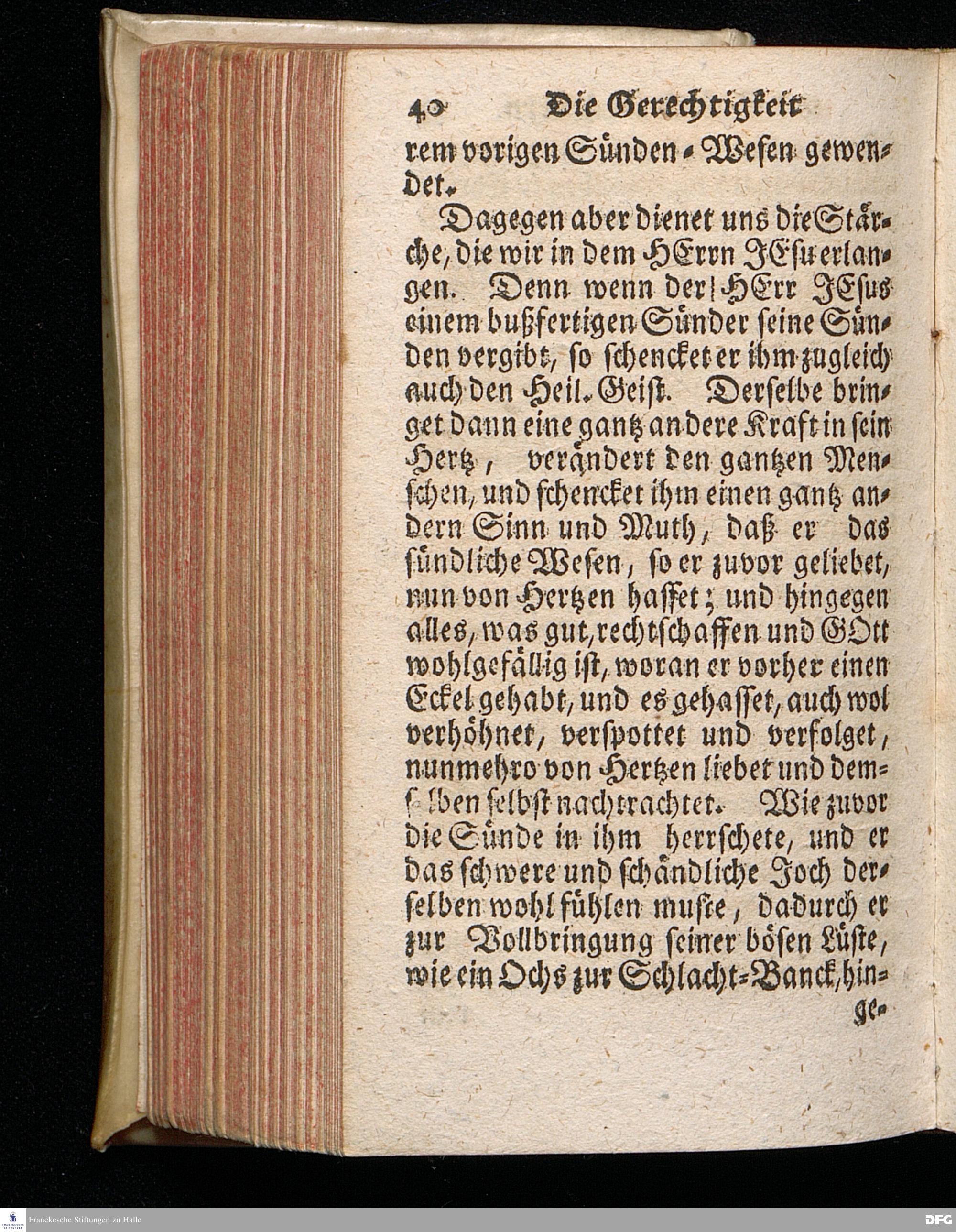 Die Gerechtigkeit und Stärcke im HErrn, am XIX.Sonntage nach Trinitatis 1720.aus dem ordentlichen Evangelio Matth. IX, 1-8. In einer vor S.Königl.Majest.in Preussen auf Deroselben allergnädigstem Befehl In der Schul=Kirche zu Halle gehaltenen und zum Druck beforderten Predigt vorgestellet von August Hermann Francken / S.Theolog.Prof.Past.Ulric.& Gymnasii Scholarcha. Andere Auflage. HALLE, Gedruckt im Wäysen=Hause. MDCCXXIII.