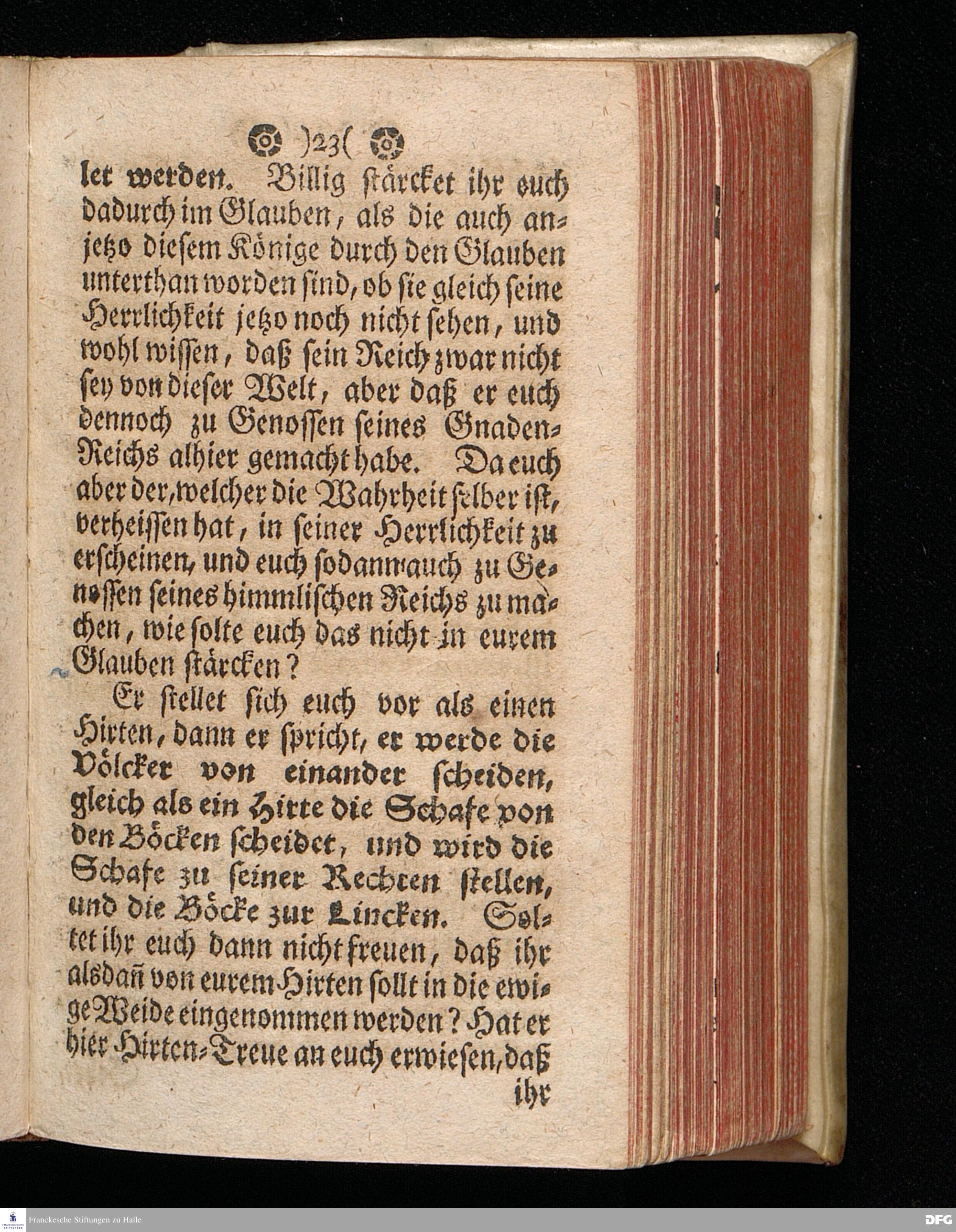 Anleitung zum rechten Gebrauch der an sich klaren Weissagung CHRISTI vom jüngsten Gerichte / am 26.Sonntage nach Trinit.1717.aus Matth.25, 31-46. in einer Mit gnädigster Bewilligung der Regierenden Hoch=Fürstl. Herrschaft ihme aufgetragenen, und in der Stifts=Kirchen zu Stuttgart abgelegten Predigt ertheilet, und auf Erfordern zum Druck gegeben von August Hermann Francken / S.Theol.Prof.Pastore u.Scholarcha zu Halle im Hertzogthum Magdeburg. Andere Auflage / Nach dem zu Stuttgart gedruckten Exemplar in Halle abgedruckt. 1717.