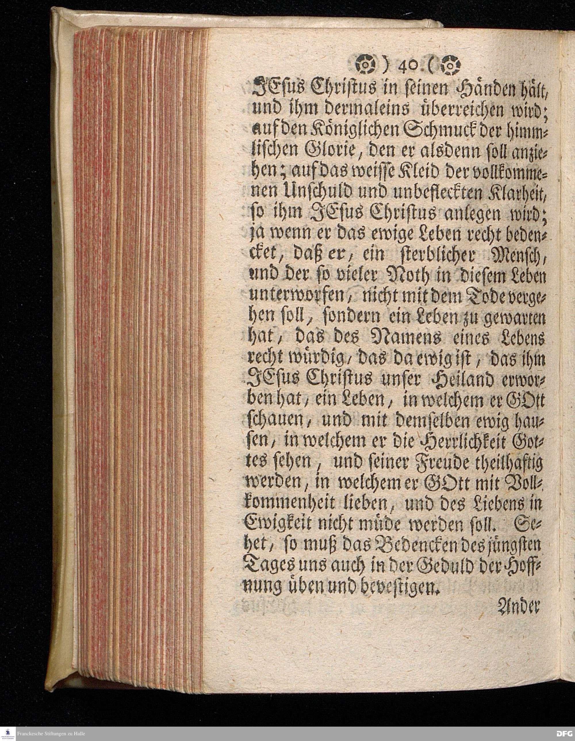 Anleitung zum rechten Gebrauch der an sich klaren Weissagung CHRISTI vom jüngsten Gerichte / am 26.Sonntage nach Trinit.1717.aus Matth.25, 31-46. in einer Mit gnädigster Bewilligung der Regierenden Hoch=Fürstl. Herrschaft ihme aufgetragenen, und in der Stifts=Kirchen zu Stuttgart abgelegten Predigt ertheilet, und auf Erfordern zum Druck gegeben von August Hermann Francken / S.Theol.Prof.Pastore u.Scholarcha zu Halle im Hertzogthum Magdeburg. Andere Auflage / Nach dem zu Stuttgart gedruckten Exemplar in Halle abgedruckt. 1717.