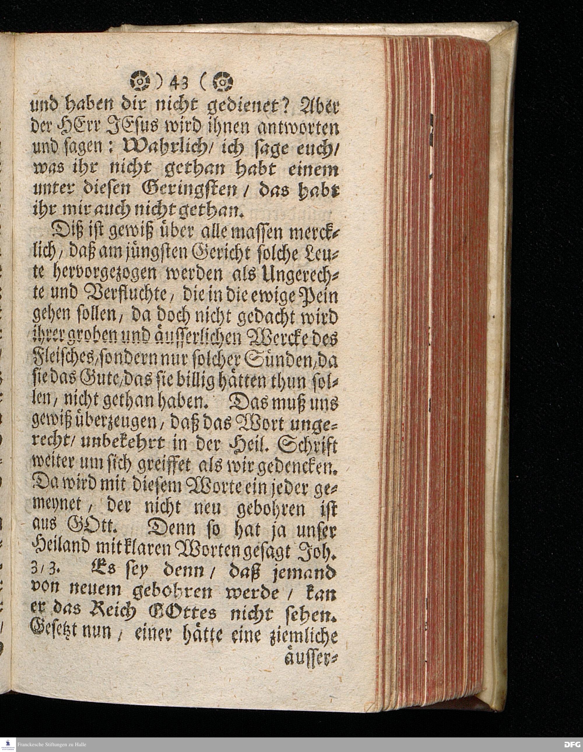 Anleitung zum rechten Gebrauch der an sich klaren Weissagung CHRISTI vom jüngsten Gerichte / am 26.Sonntage nach Trinit.1717.aus Matth.25, 31-46. in einer Mit gnädigster Bewilligung der Regierenden Hoch=Fürstl. Herrschaft ihme aufgetragenen, und in der Stifts=Kirchen zu Stuttgart abgelegten Predigt ertheilet, und auf Erfordern zum Druck gegeben von August Hermann Francken / S.Theol.Prof.Pastore u.Scholarcha zu Halle im Hertzogthum Magdeburg. Andere Auflage / Nach dem zu Stuttgart gedruckten Exemplar in Halle abgedruckt. 1717.