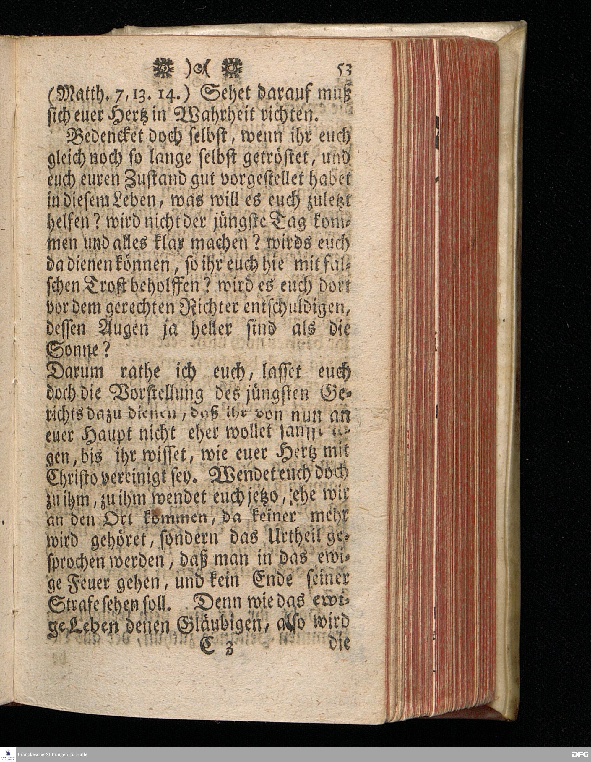 Anleitung zum rechten Gebrauch der an sich klaren Weissagung CHRISTI vom jüngsten Gerichte / am 26.Sonntage nach Trinit.1717.aus Matth.25, 31-46. in einer Mit gnädigster Bewilligung der Regierenden Hoch=Fürstl. Herrschaft ihme aufgetragenen, und in der Stifts=Kirchen zu Stuttgart abgelegten Predigt ertheilet, und auf Erfordern zum Druck gegeben von August Hermann Francken / S.Theol.Prof.Pastore u.Scholarcha zu Halle im Hertzogthum Magdeburg. Andere Auflage / Nach dem zu Stuttgart gedruckten Exemplar in Halle abgedruckt. 1717.
