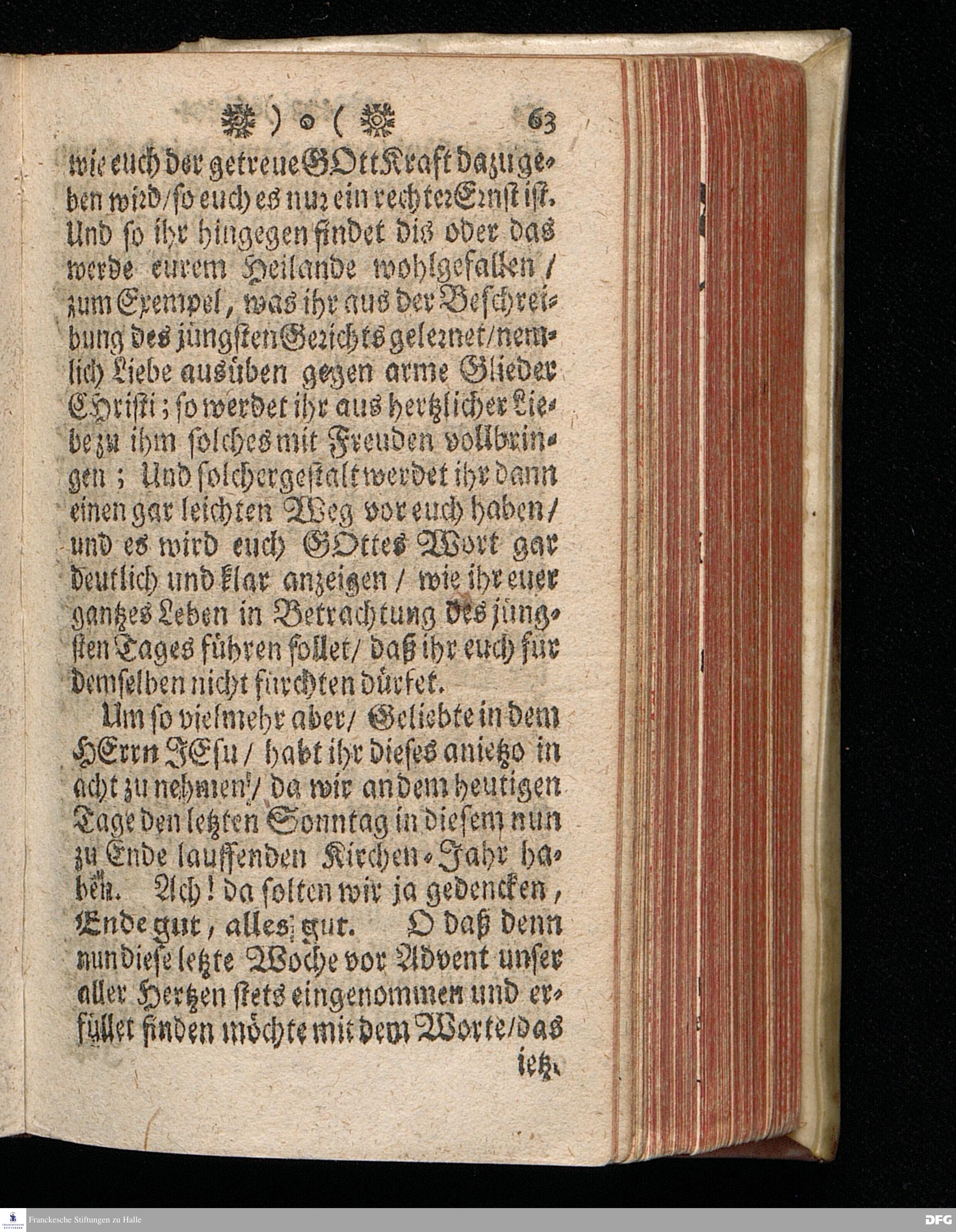 Anleitung zum rechten Gebrauch der an sich klaren Weissagung CHRISTI vom jüngsten Gerichte / am 26.Sonntage nach Trinit.1717.aus Matth.25, 31-46. in einer Mit gnädigster Bewilligung der Regierenden Hoch=Fürstl. Herrschaft ihme aufgetragenen, und in der Stifts=Kirchen zu Stuttgart abgelegten Predigt ertheilet, und auf Erfordern zum Druck gegeben von August Hermann Francken / S.Theol.Prof.Pastore u.Scholarcha zu Halle im Hertzogthum Magdeburg. Andere Auflage / Nach dem zu Stuttgart gedruckten Exemplar in Halle abgedruckt. 1717.