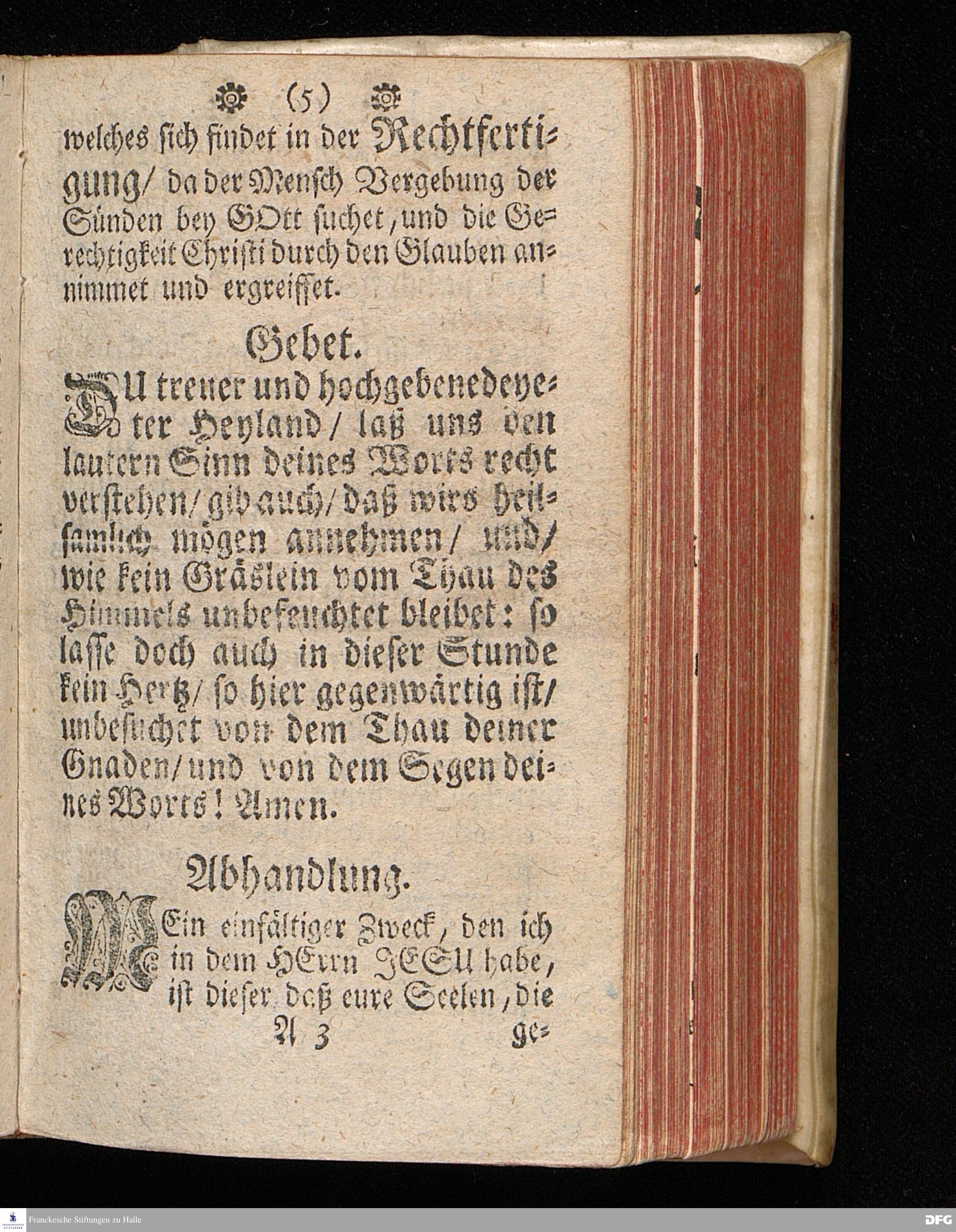 Das Geschäfte des Glaubens in der Rechtfertigung / Aus Johann.III, 16. In einer zu Halle in der Schul=Kirche Am II.Pfingst=Tage Anno 1709. gehaltenen Predigt / vorgestellet von August Hermann Francken / S.Theol.Prof.und Past. Dritte Auflage. HALLE / In Verlegung des Wäysen=Hauses. 1729.