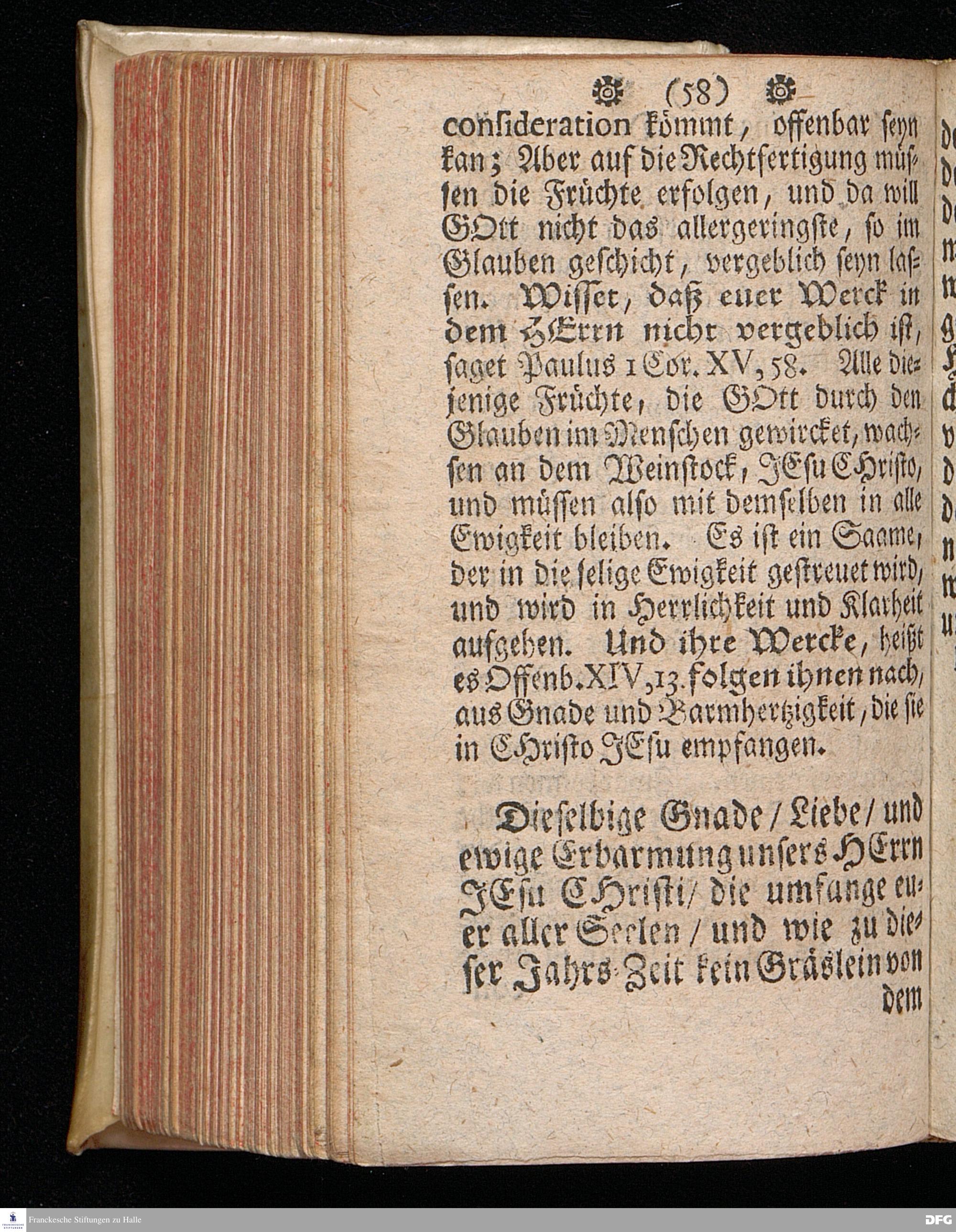 Das Geschäfte des Glaubens in der Rechtfertigung / Aus Johann.III, 16. In einer zu Halle in der Schul=Kirche Am II.Pfingst=Tage Anno 1709. gehaltenen Predigt / vorgestellet von August Hermann Francken / S.Theol.Prof.und Past. Dritte Auflage. HALLE / In Verlegung des Wäysen=Hauses. 1729.