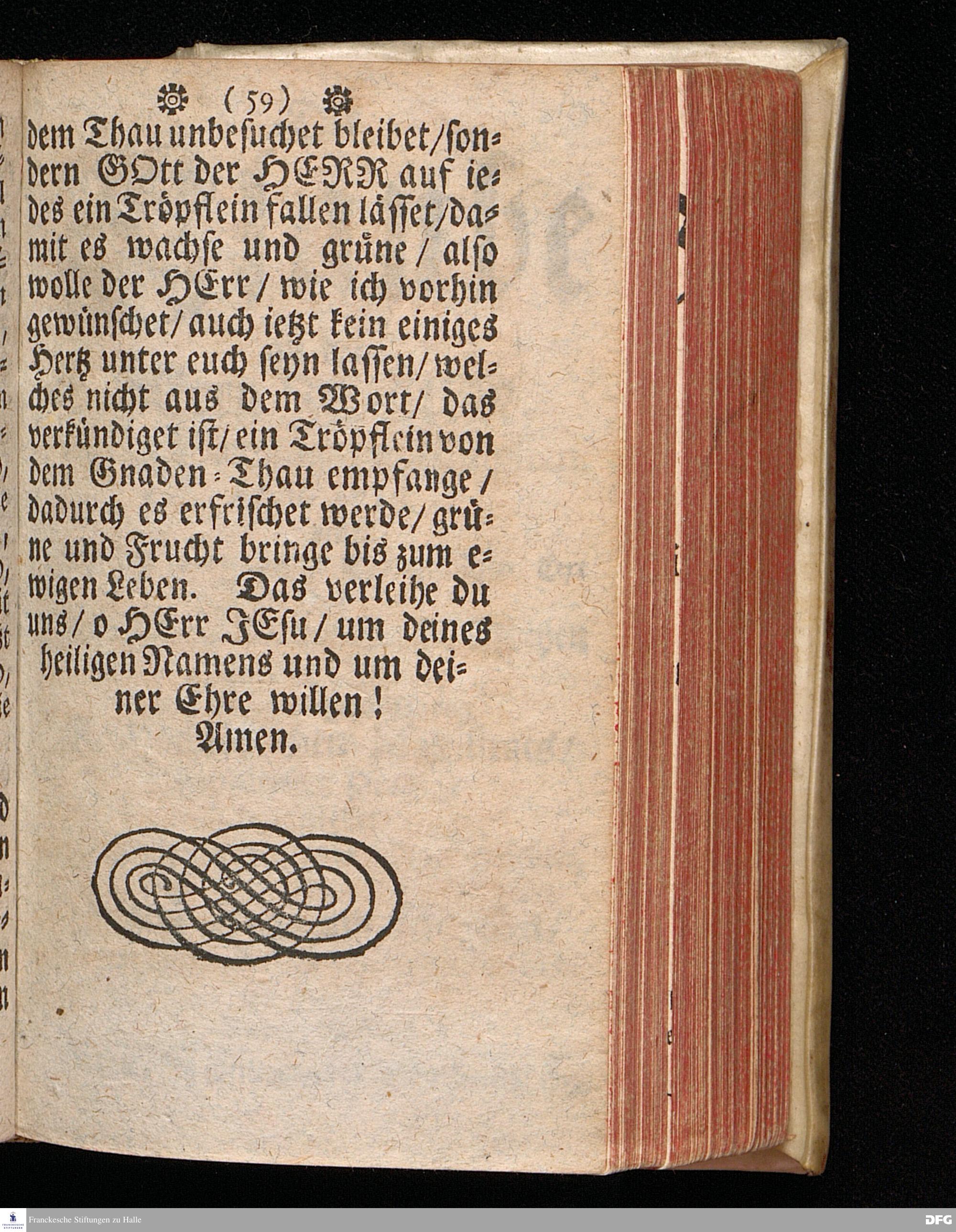 Das Geschäfte des Glaubens in der Rechtfertigung / Aus Johann.III, 16. In einer zu Halle in der Schul=Kirche Am II.Pfingst=Tage Anno 1709. gehaltenen Predigt / vorgestellet von August Hermann Francken / S.Theol.Prof.und Past. Dritte Auflage. HALLE / In Verlegung des Wäysen=Hauses. 1729.