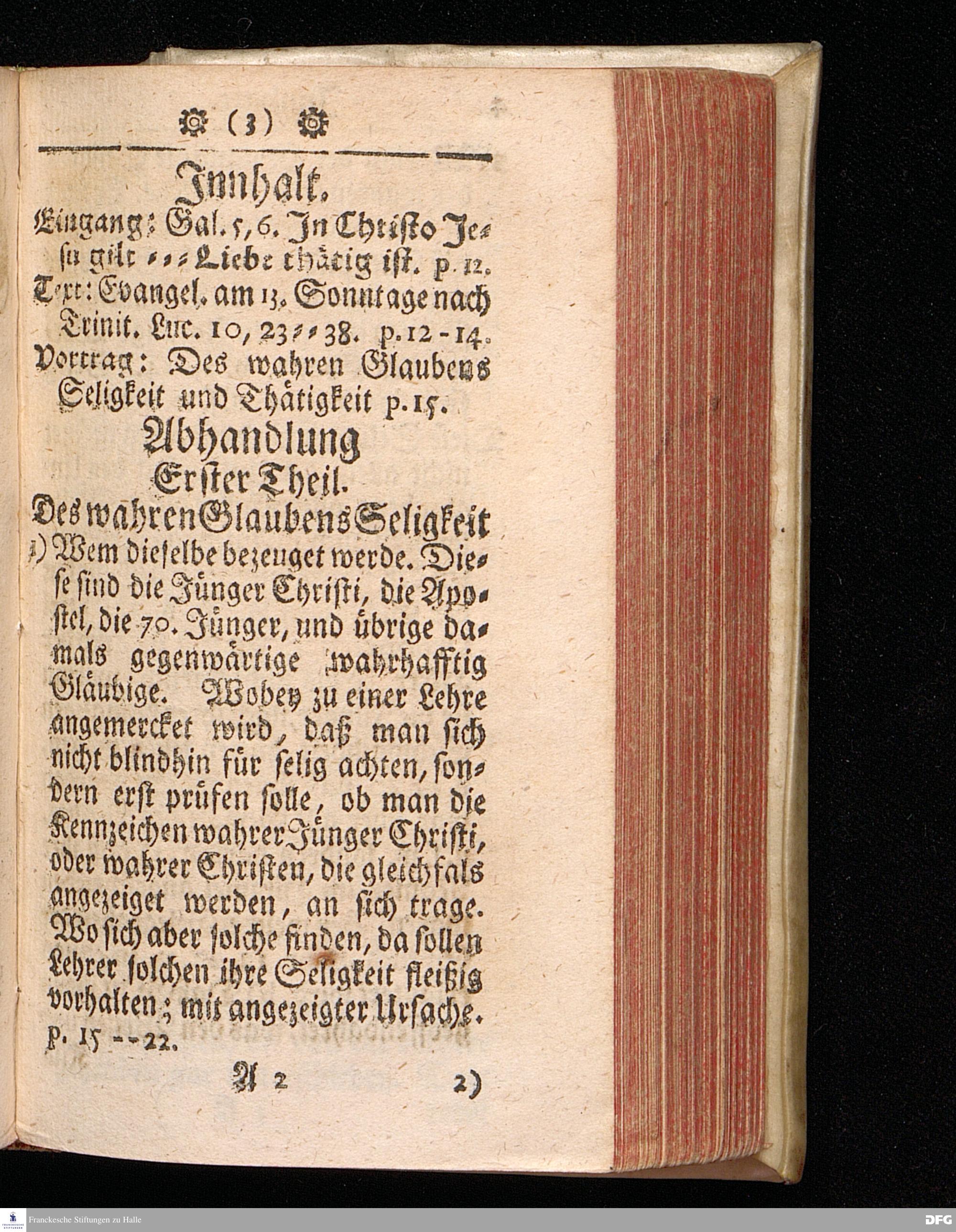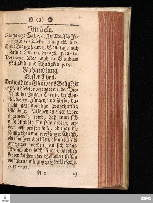 Des wahren Glaubens Seligkeit und Thätigkeit / Am 13.Sonntage nach Trinitatis. Anno 1719. in einer über den ordentlichen Evangel.Text Luc.X, 23-38.[vielmehr 23-28] in der Kirche zu St.Petri in Cölln an der Spree / auf geschehenen Antrag gehaltenen Predigt betrachtet, und zum Druck überlassen Von August Hermañ Francken / S.Th.Prof.Past.zu S.Ulrich / und des Gymn.Scholarcha in Halle. Andere Auflage. HALLE / in Verlegung des Wäysen=Hauses / 1723.