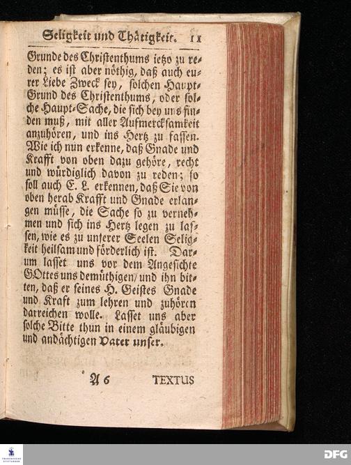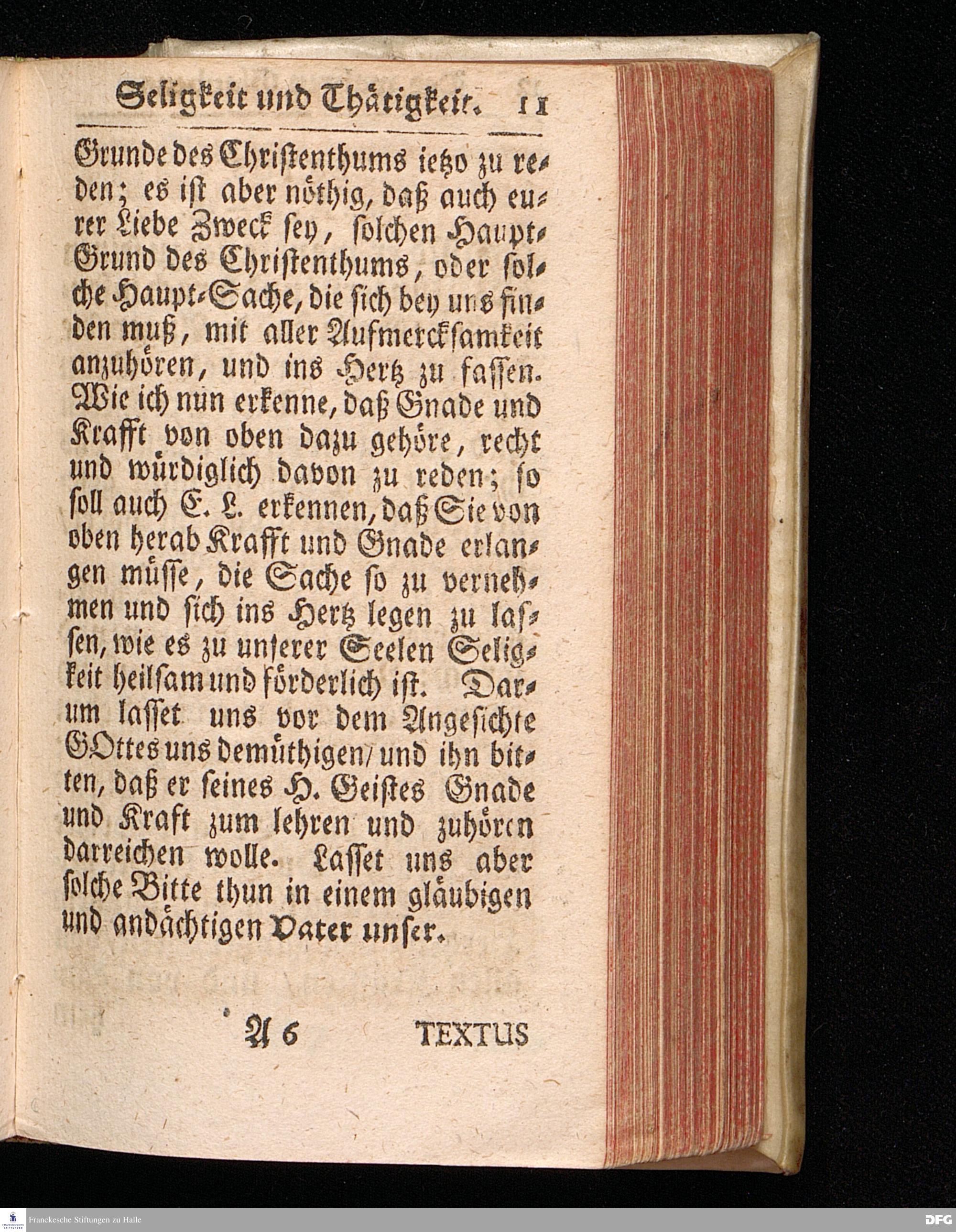 Des wahren Glaubens Seligkeit und Thätigkeit / Am 13.Sonntage nach Trinitatis. Anno 1719. in einer über den ordentlichen Evangel.Text Luc.X, 23-38.[vielmehr 23-28] in der Kirche zu St.Petri in Cölln an der Spree / auf geschehenen Antrag gehaltenen Predigt betrachtet, und zum Druck überlassen Von August Hermañ Francken / S.Th.Prof.Past.zu S.Ulrich / und des Gymn.Scholarcha in Halle. Andere Auflage. HALLE / in Verlegung des Wäysen=Hauses / 1723.