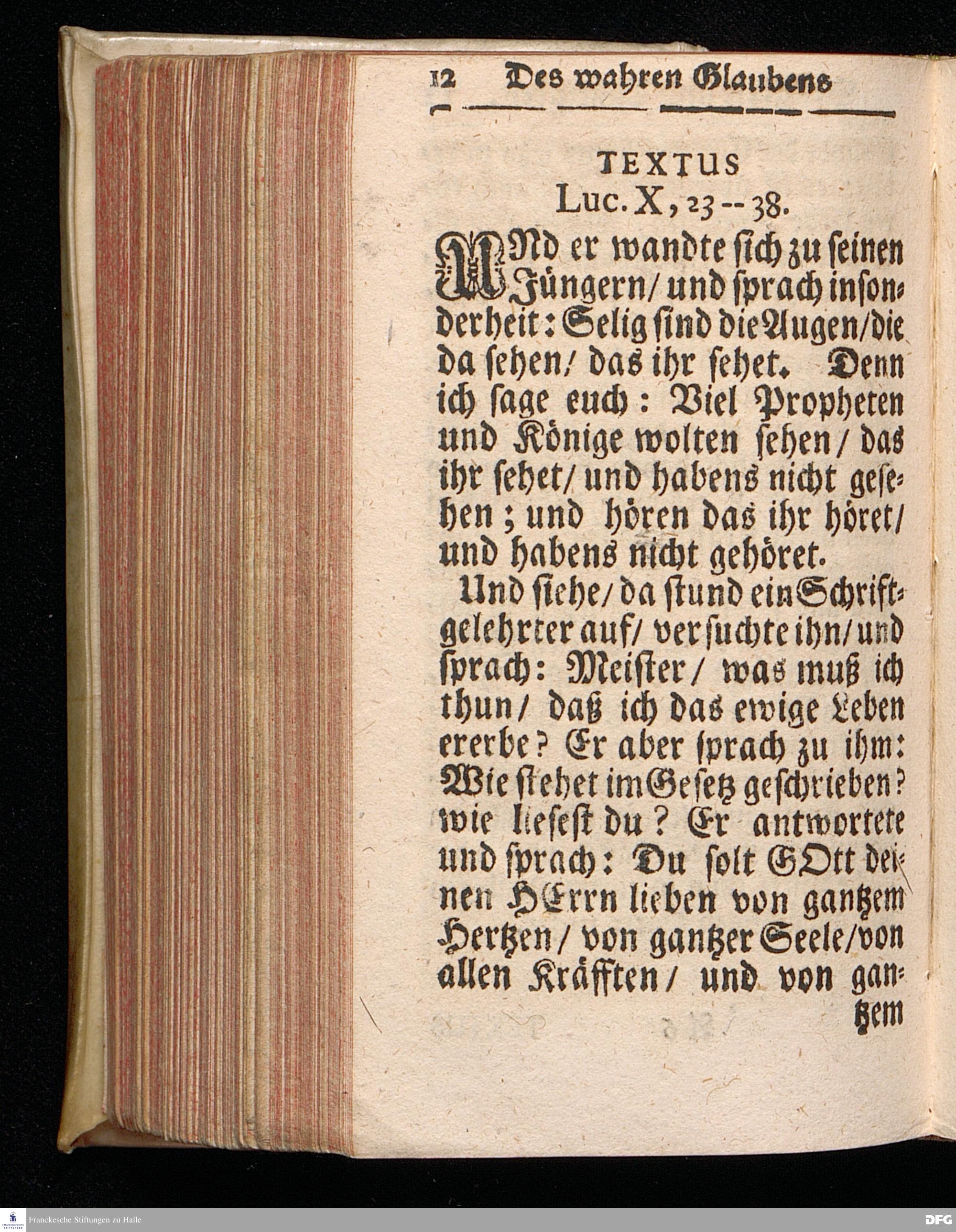 Des wahren Glaubens Seligkeit und Thätigkeit / Am 13.Sonntage nach Trinitatis. Anno 1719. in einer über den ordentlichen Evangel.Text Luc.X, 23-38.[vielmehr 23-28] in der Kirche zu St.Petri in Cölln an der Spree / auf geschehenen Antrag gehaltenen Predigt betrachtet, und zum Druck überlassen Von August Hermañ Francken / S.Th.Prof.Past.zu S.Ulrich / und des Gymn.Scholarcha in Halle. Andere Auflage. HALLE / in Verlegung des Wäysen=Hauses / 1723.
