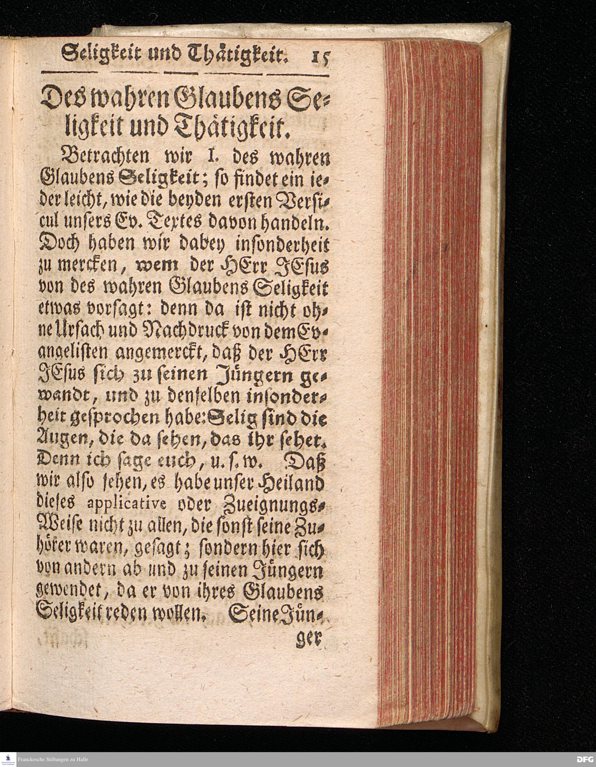 Des wahren Glaubens Seligkeit und Thätigkeit / Am 13.Sonntage nach Trinitatis. Anno 1719. in einer über den ordentlichen Evangel.Text Luc.X, 23-38.[vielmehr 23-28] in der Kirche zu St.Petri in Cölln an der Spree / auf geschehenen Antrag gehaltenen Predigt betrachtet, und zum Druck überlassen Von August Hermañ Francken / S.Th.Prof.Past.zu S.Ulrich / und des Gymn.Scholarcha in Halle. Andere Auflage. HALLE / in Verlegung des Wäysen=Hauses / 1723.