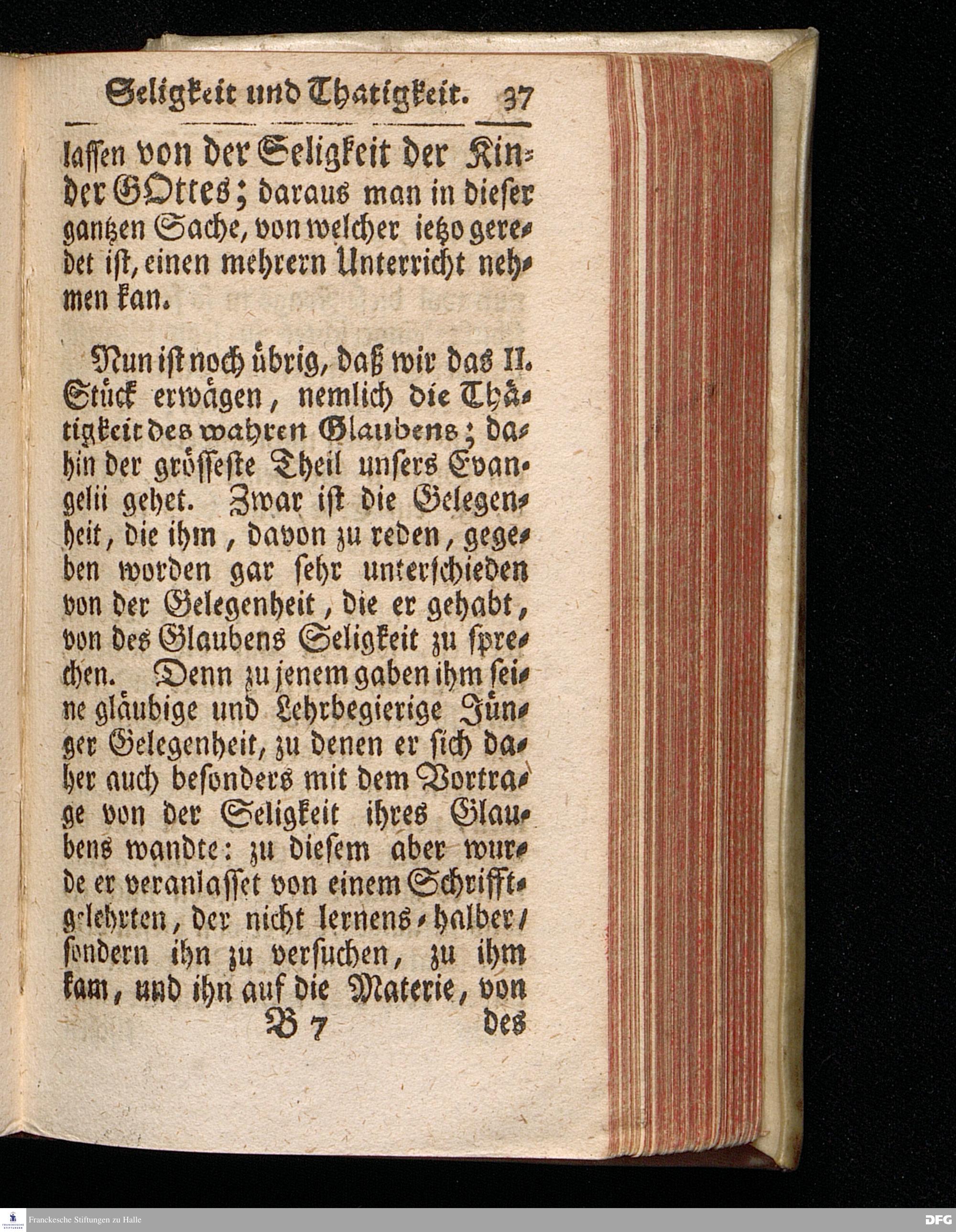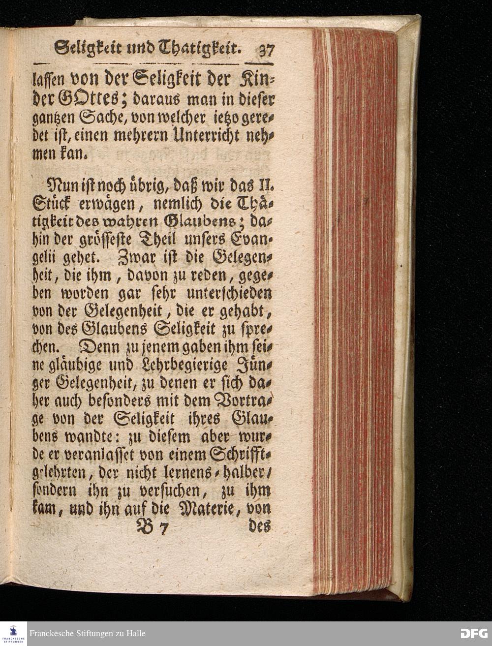 Des wahren Glaubens Seligkeit und Thätigkeit / Am 13.Sonntage nach Trinitatis. Anno 1719. in einer über den ordentlichen Evangel.Text Luc.X, 23-38.[vielmehr 23-28] in der Kirche zu St.Petri in Cölln an der Spree / auf geschehenen Antrag gehaltenen Predigt betrachtet, und zum Druck überlassen Von August Hermañ Francken / S.Th.Prof.Past.zu S.Ulrich / und des Gymn.Scholarcha in Halle. Andere Auflage. HALLE / in Verlegung des Wäysen=Hauses / 1723.