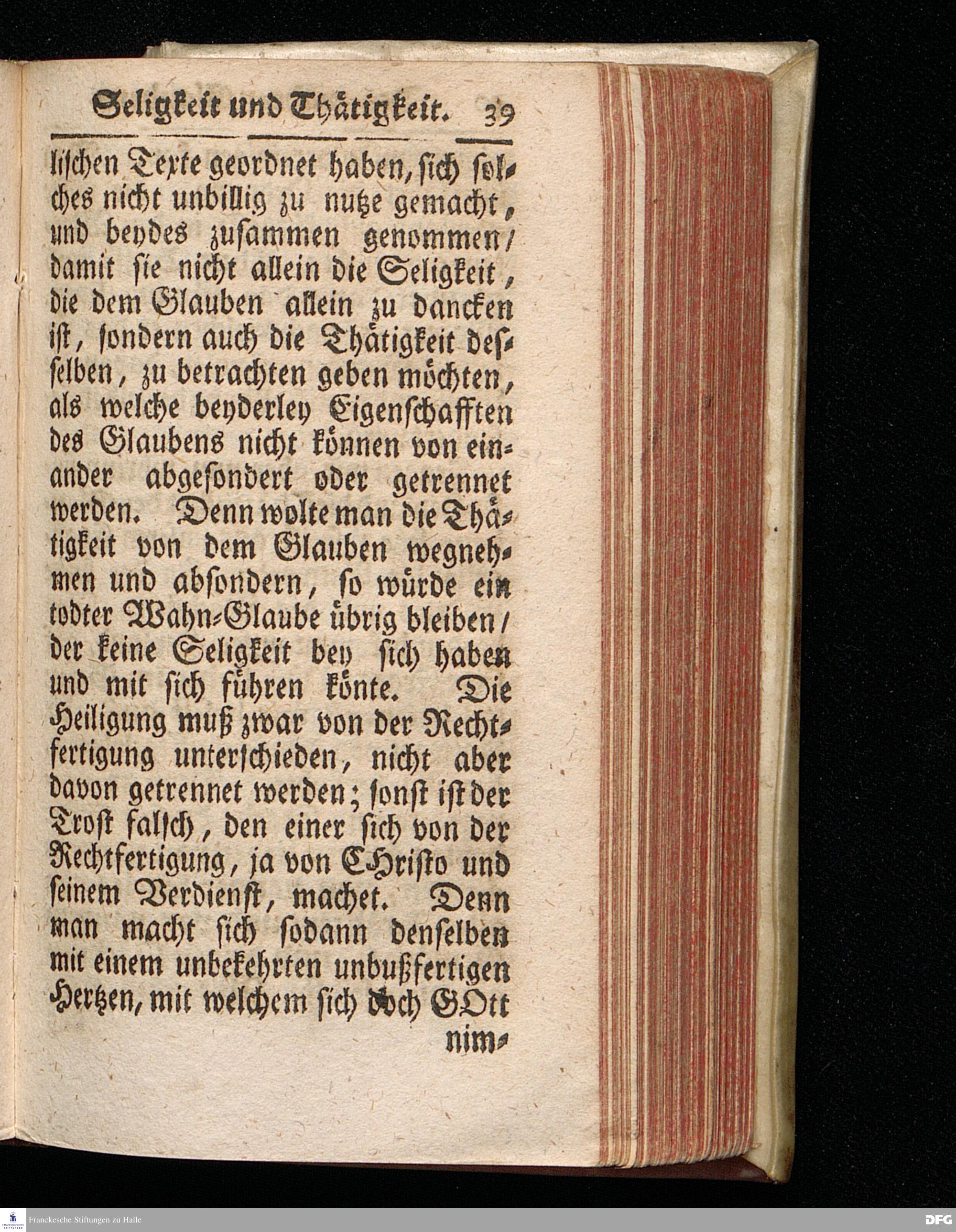 Des wahren Glaubens Seligkeit und Thätigkeit / Am 13.Sonntage nach Trinitatis. Anno 1719. in einer über den ordentlichen Evangel.Text Luc.X, 23-38.[vielmehr 23-28] in der Kirche zu St.Petri in Cölln an der Spree / auf geschehenen Antrag gehaltenen Predigt betrachtet, und zum Druck überlassen Von August Hermañ Francken / S.Th.Prof.Past.zu S.Ulrich / und des Gymn.Scholarcha in Halle. Andere Auflage. HALLE / in Verlegung des Wäysen=Hauses / 1723.