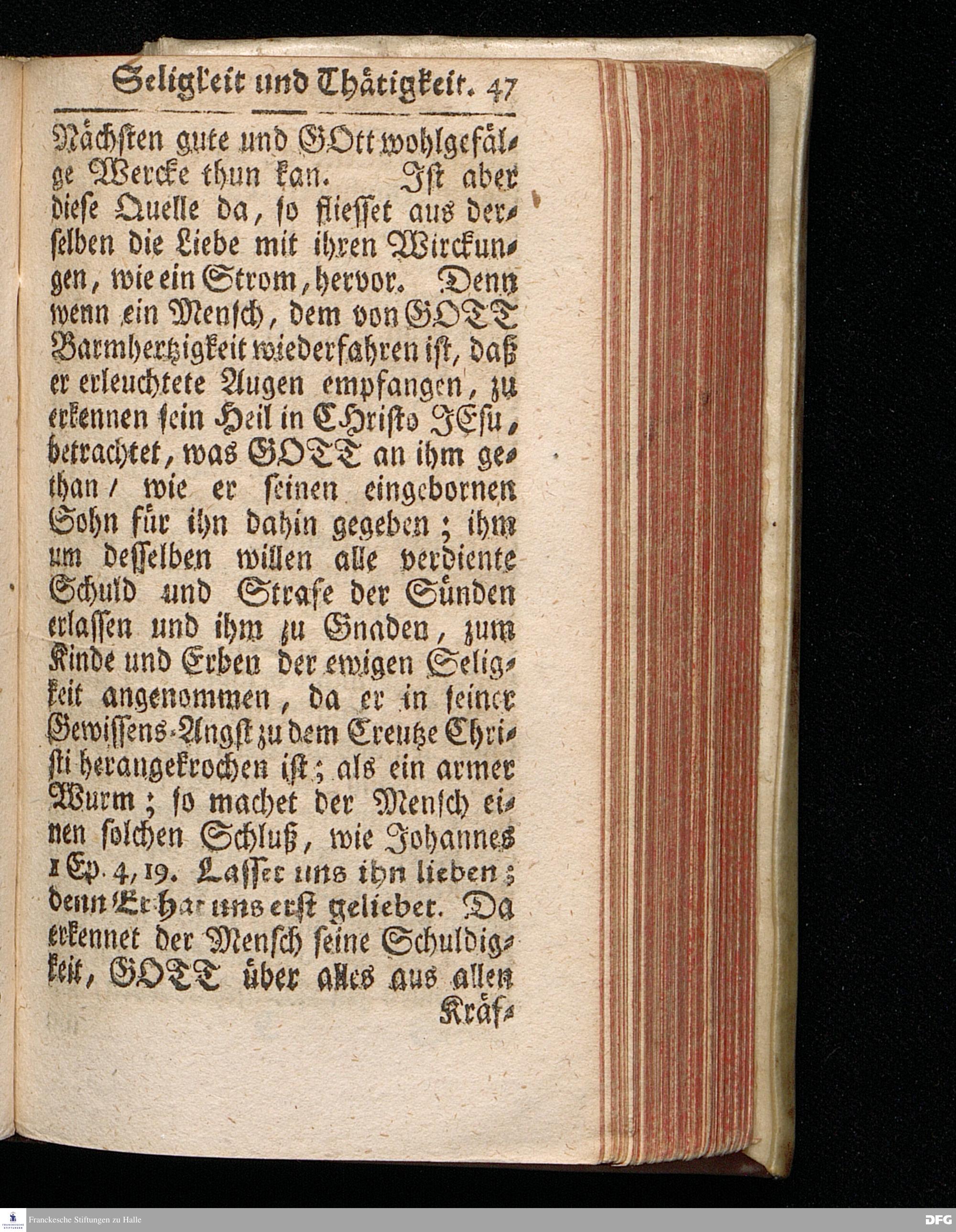 Des wahren Glaubens Seligkeit und Thätigkeit / Am 13.Sonntage nach Trinitatis. Anno 1719. in einer über den ordentlichen Evangel.Text Luc.X, 23-38.[vielmehr 23-28] in der Kirche zu St.Petri in Cölln an der Spree / auf geschehenen Antrag gehaltenen Predigt betrachtet, und zum Druck überlassen Von August Hermañ Francken / S.Th.Prof.Past.zu S.Ulrich / und des Gymn.Scholarcha in Halle. Andere Auflage. HALLE / in Verlegung des Wäysen=Hauses / 1723.