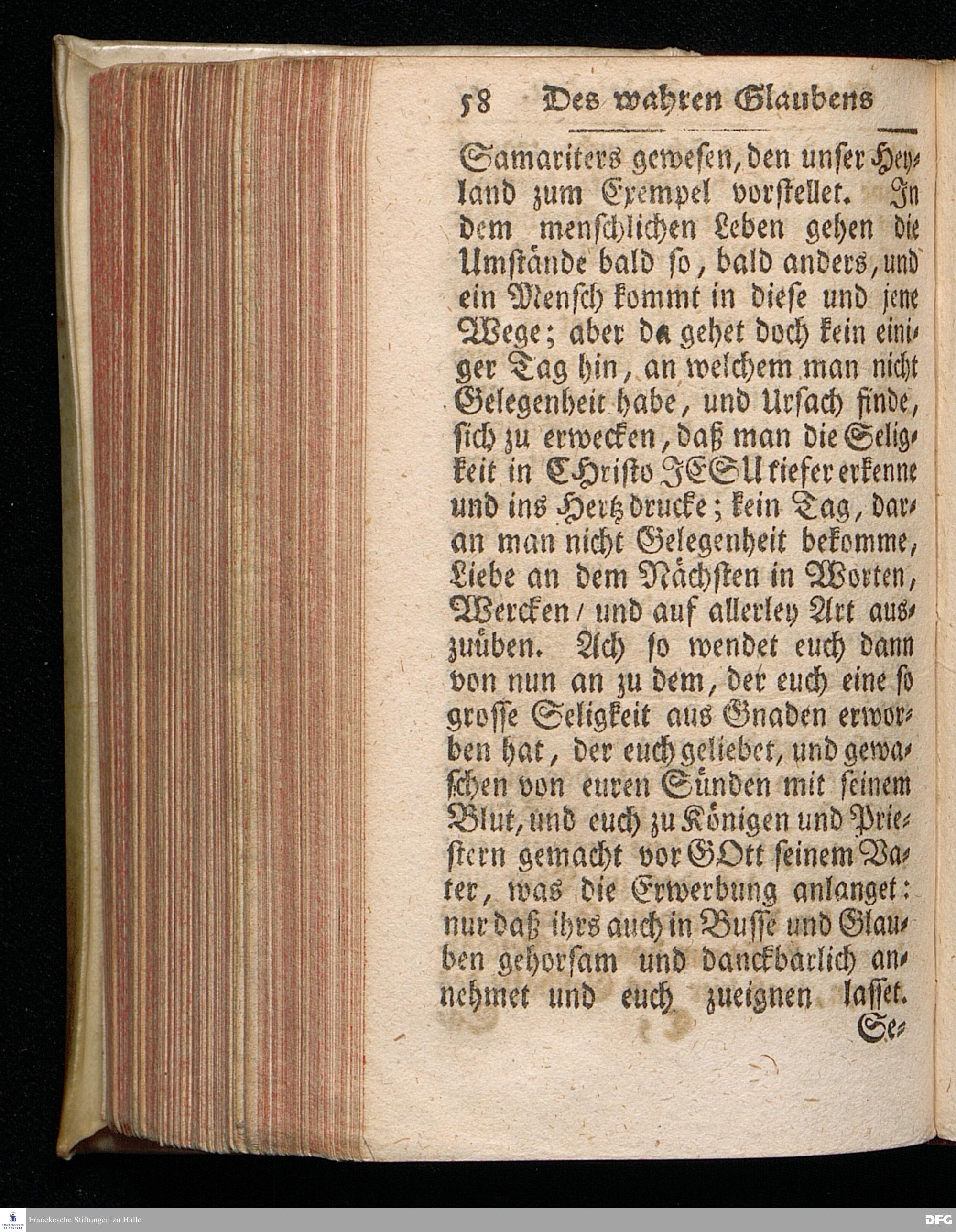 Des wahren Glaubens Seligkeit und Thätigkeit / Am 13.Sonntage nach Trinitatis. Anno 1719. in einer über den ordentlichen Evangel.Text Luc.X, 23-38.[vielmehr 23-28] in der Kirche zu St.Petri in Cölln an der Spree / auf geschehenen Antrag gehaltenen Predigt betrachtet, und zum Druck überlassen Von August Hermañ Francken / S.Th.Prof.Past.zu S.Ulrich / und des Gymn.Scholarcha in Halle. Andere Auflage. HALLE / in Verlegung des Wäysen=Hauses / 1723.