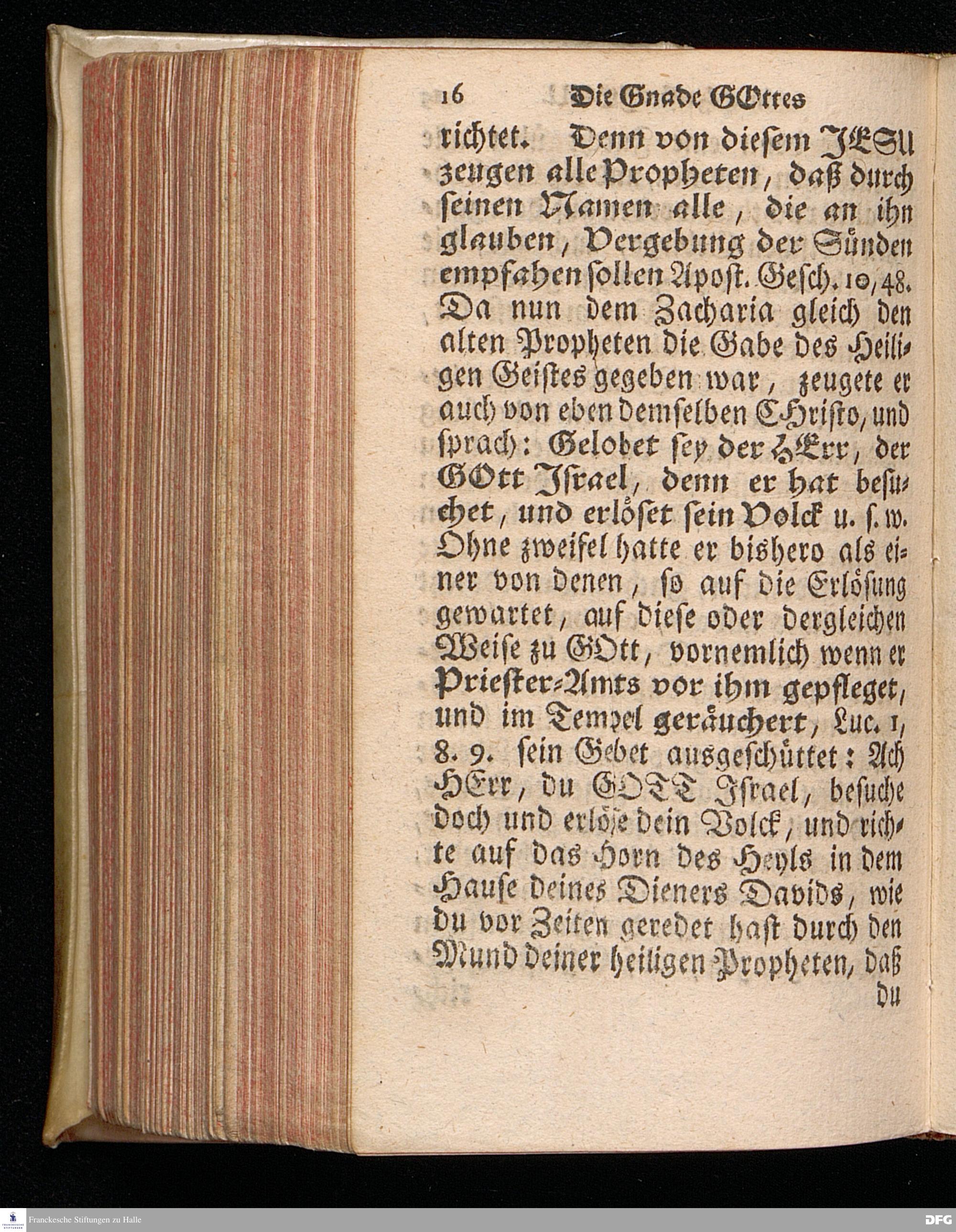 Die Gnade GOttes In CHristo JESU, Aus dem Evangelischen Text Luc.I, 57-80. Am Tage Johannis des Täuffers Ao.1714. In einer auf Erfordern In der Stadt=Kirchen zu Gera im Vogt-Lande gehaltenen Predigt vorgestellet von August Hermann Francken / S.Theol.Prof.Ord.& Past. Andere Auflage. Halle / gedruckt im Wäysen=Hause 1723.