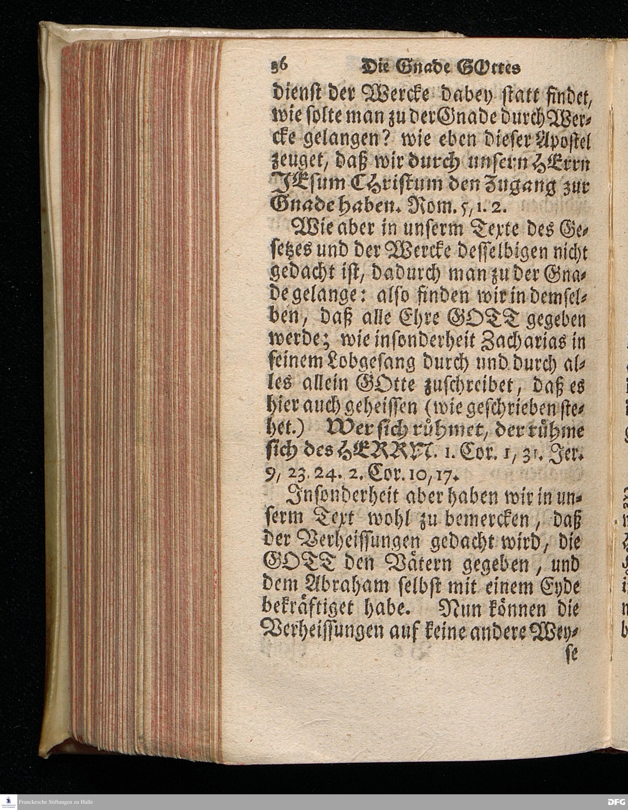 Die Gnade GOttes In CHristo JESU, Aus dem Evangelischen Text Luc.I, 57-80. Am Tage Johannis des Täuffers Ao.1714. In einer auf Erfordern In der Stadt=Kirchen zu Gera im Vogt-Lande gehaltenen Predigt vorgestellet von August Hermann Francken / S.Theol.Prof.Ord.& Past. Andere Auflage. Halle / gedruckt im Wäysen=Hause 1723.