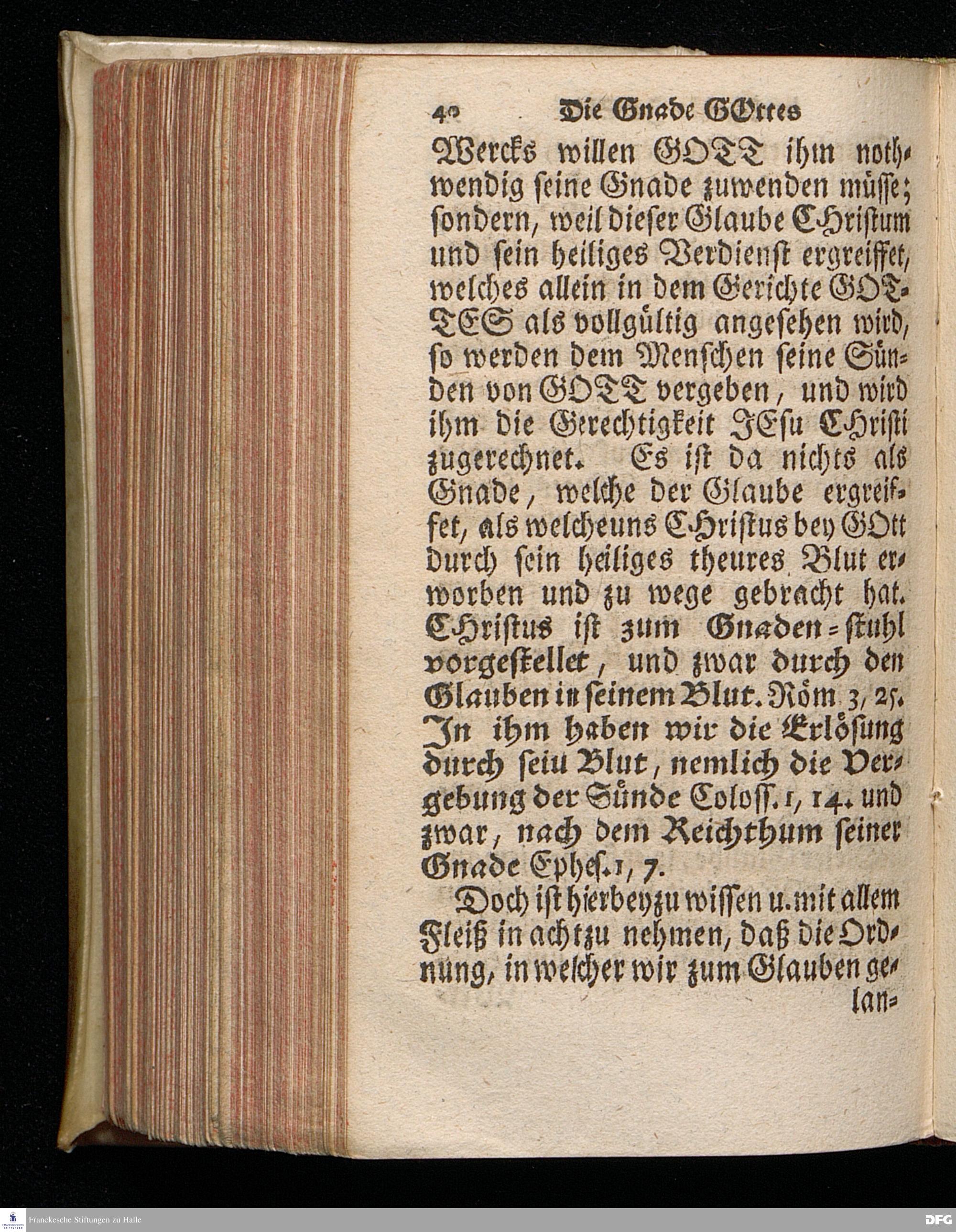 Die Gnade GOttes In CHristo JESU, Aus dem Evangelischen Text Luc.I, 57-80. Am Tage Johannis des Täuffers Ao.1714. In einer auf Erfordern In der Stadt=Kirchen zu Gera im Vogt-Lande gehaltenen Predigt vorgestellet von August Hermann Francken / S.Theol.Prof.Ord.& Past. Andere Auflage. Halle / gedruckt im Wäysen=Hause 1723.