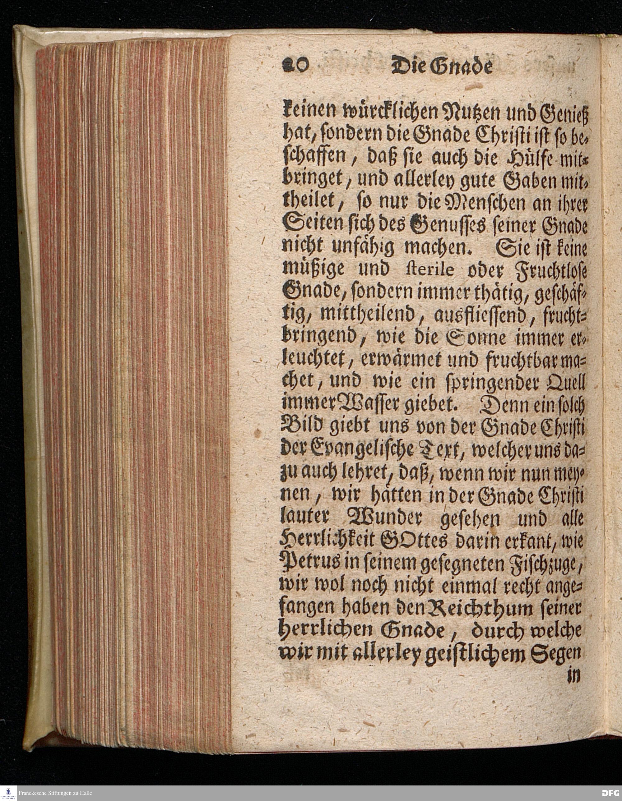 Die Gnade Unsers HErrn JESU CHristi / Aus dem Evangelischen Text Luc.V, 1=11. Am V. Soñtage nach Trinit. 1714. In der St.Georgen=Kirche zu Glaucha an Halle vorgestellet von August Hermann Francken / S.Theol.Prof.Ord.& Past. HALLE, Gedruckt im Wäysen=Hause. 1729.