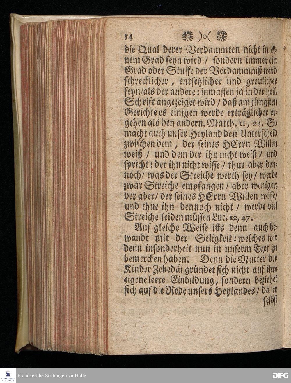 Die GRADUS Oder Stuffen der ewigen Herrlichkeit Aus Matth. XX, 20-23. und andern Schrifft=Stellen erwiesen und vorgestellet In einer öffentlichen Rede auf dem Wäysenhause zu Glaucha an Halle den 1.August. M.DCC.XI. Von August Hermann Francken / S.Theolog.Profess.Ord.Past.Vlric. und Schol. Andere Auflage. HALLE, In Verlegung des Wäysenhauses / MDCCXVI.