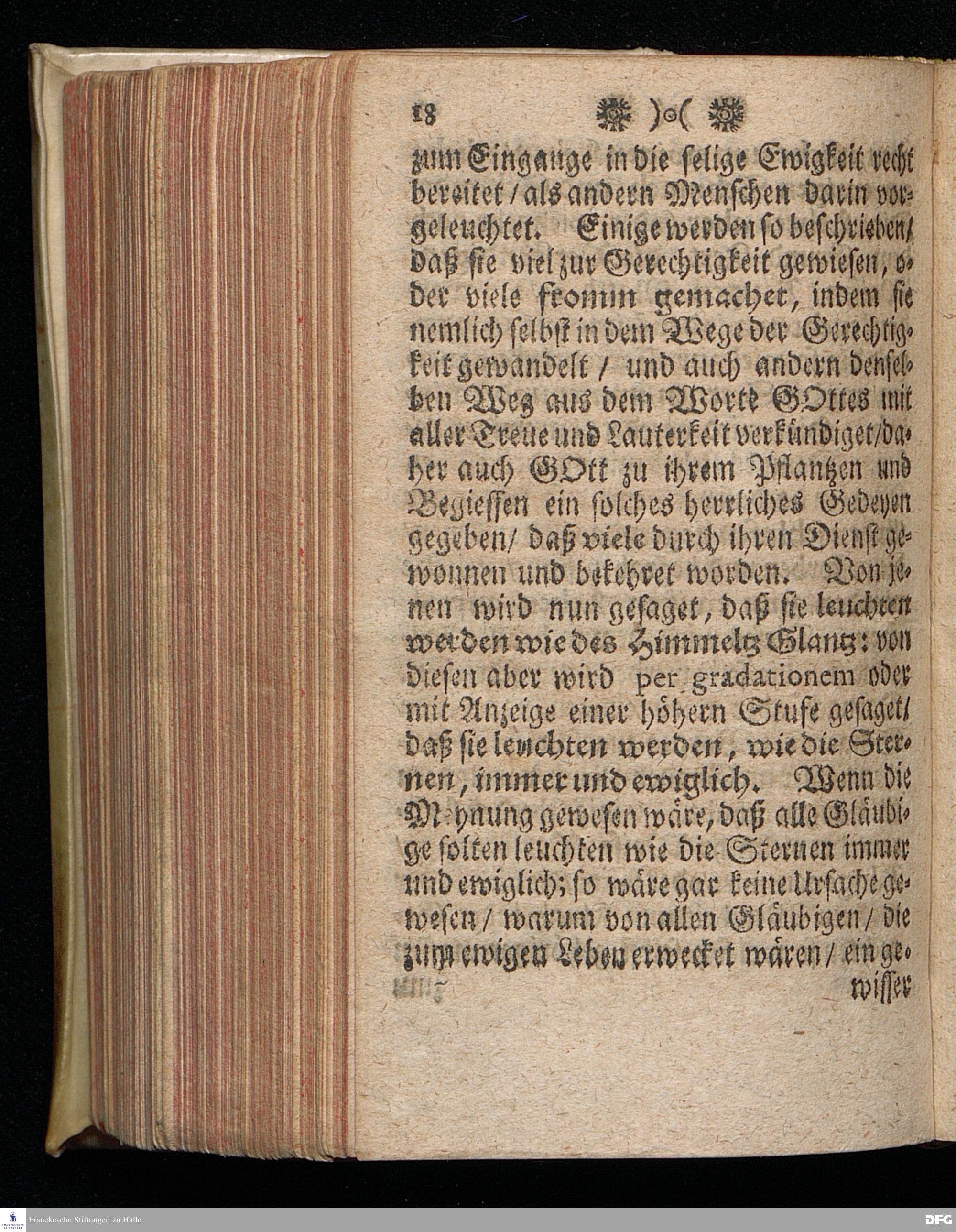 Die GRADUS Oder Stuffen der ewigen Herrlichkeit Aus Matth. XX, 20-23. und andern Schrifft=Stellen erwiesen und vorgestellet In einer öffentlichen Rede auf dem Wäysenhause zu Glaucha an Halle den 1.August. M.DCC.XI. Von August Hermann Francken / S.Theolog.Profess.Ord.Past.Vlric. und Schol. Andere Auflage. HALLE, In Verlegung des Wäysenhauses / MDCCXVI.