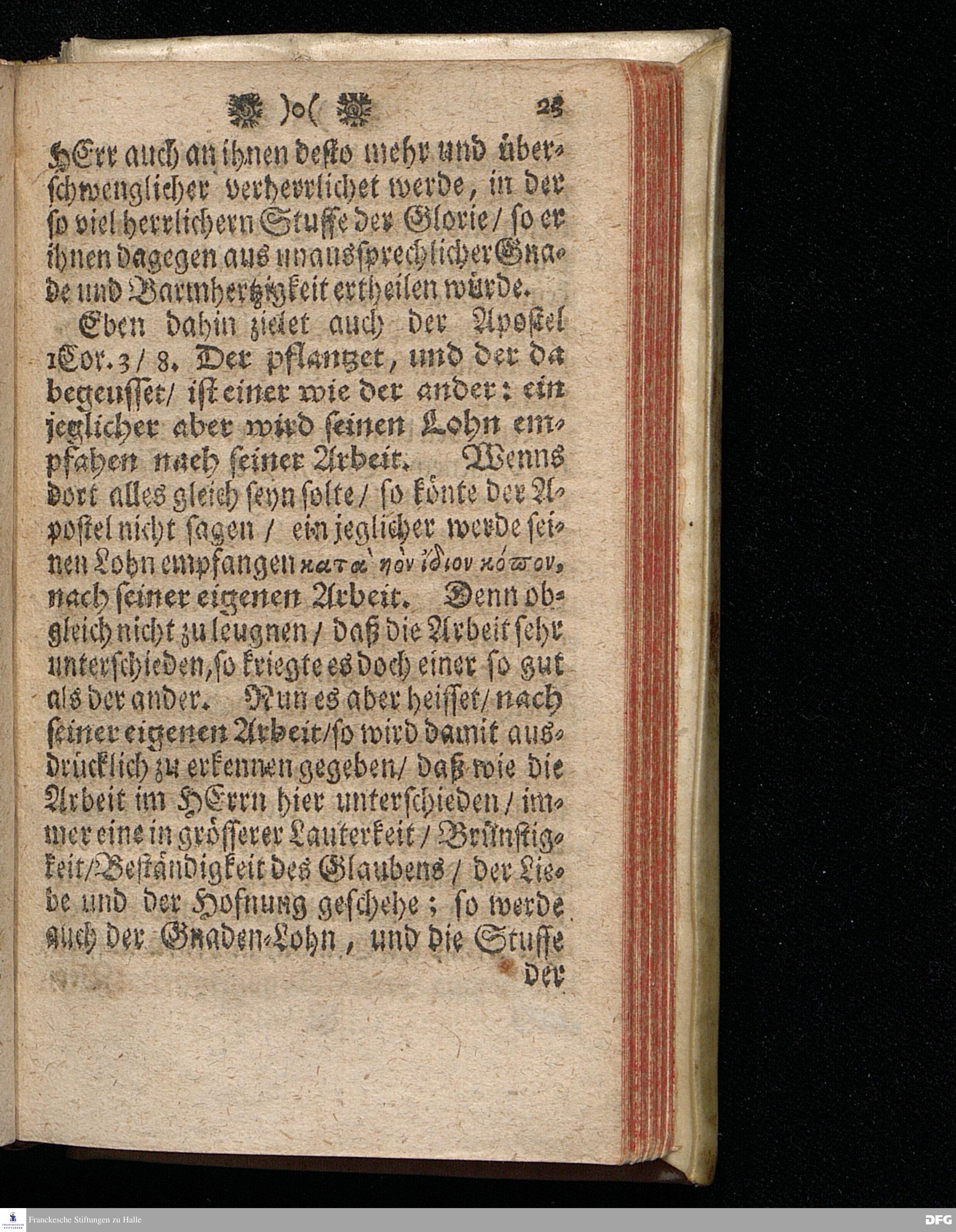 Die GRADUS Oder Stuffen der ewigen Herrlichkeit Aus Matth. XX, 20-23. und andern Schrifft=Stellen erwiesen und vorgestellet In einer öffentlichen Rede auf dem Wäysenhause zu Glaucha an Halle den 1.August. M.DCC.XI. Von August Hermann Francken / S.Theolog.Profess.Ord.Past.Vlric. und Schol. Andere Auflage. HALLE, In Verlegung des Wäysenhauses / MDCCXVI.