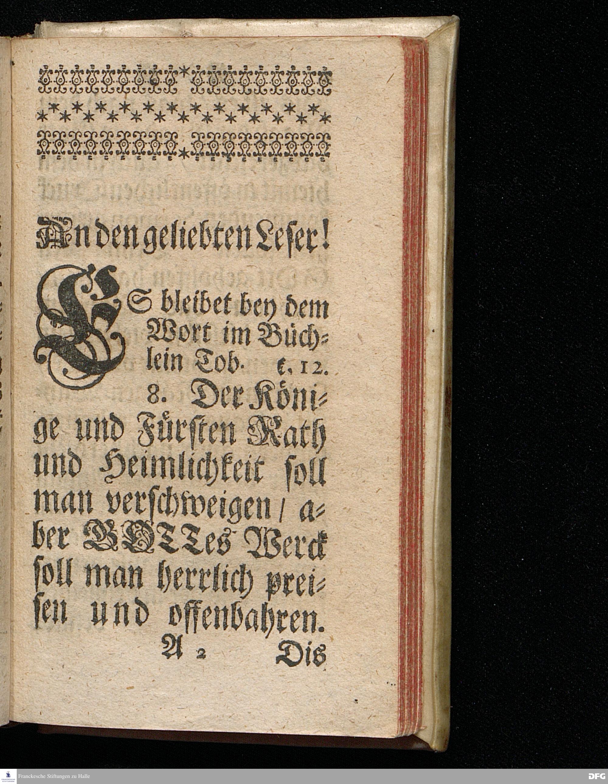 Die Güte GOttes und die Sicherheit unter dem Schatten seiner Flügel / Bey dem ersten öffentlichen Gebrauch eines neu=erbaueten Saals im Waysen=Hause zu Glaucha an Halle / den 5.August. MDCCXI. aus schuldiger Danckbarkeit gegen GOtt und zur Erweckung und Stärckung des Vertrauens auf denselben lebendigen GOTT / vorgestellet Von August Hermann Francken / S.Theol.Prof.Ord.Past.Vlr.u.Sch. Andere Auflage. HALLE, In Verlegung des Wäysenhauses / 1716.