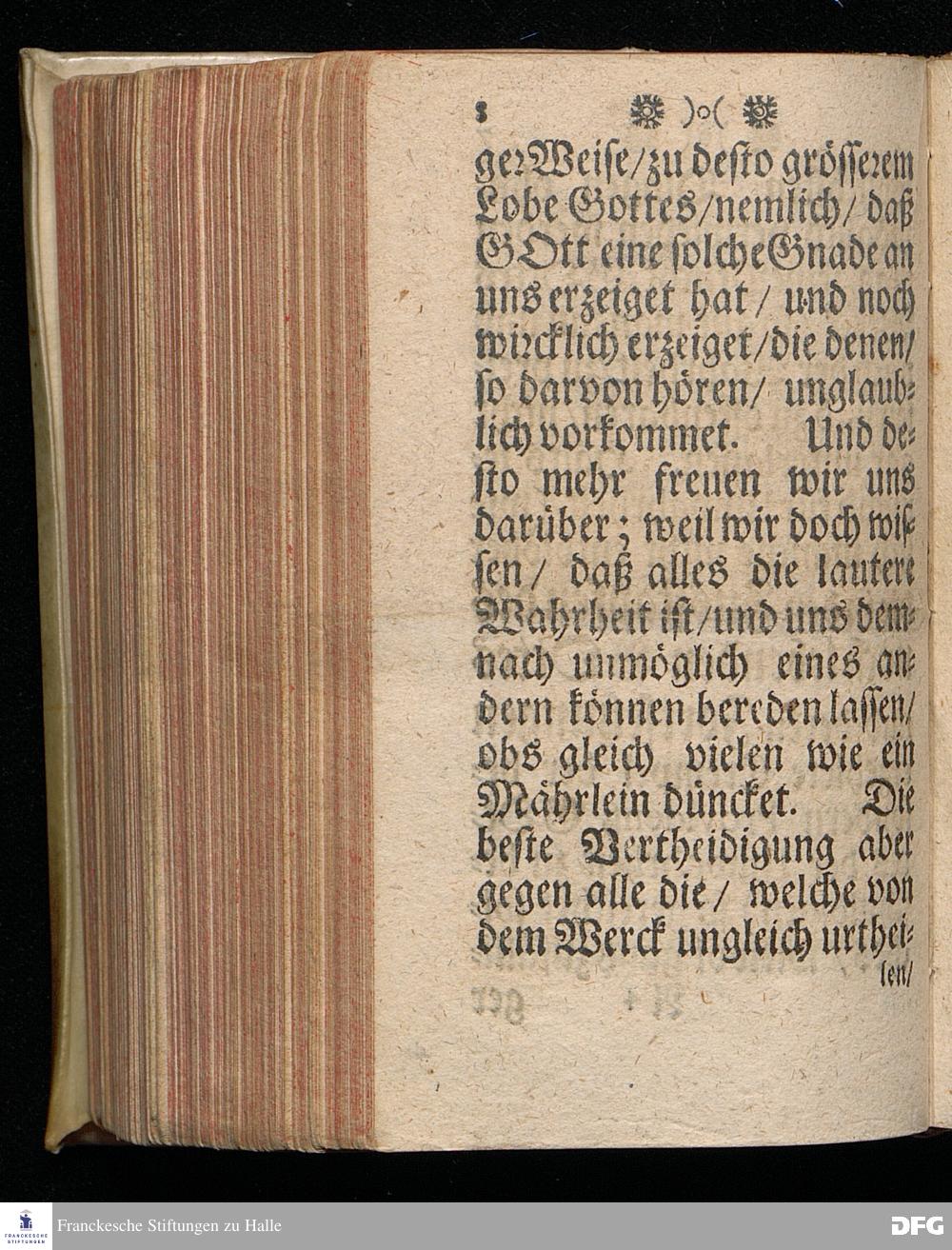 Die Güte GOttes und die Sicherheit unter dem Schatten seiner Flügel / Bey dem ersten öffentlichen Gebrauch eines neu=erbaueten Saals im Waysen=Hause zu Glaucha an Halle / den 5.August. MDCCXI. aus schuldiger Danckbarkeit gegen GOtt und zur Erweckung und Stärckung des Vertrauens auf denselben lebendigen GOTT / vorgestellet Von August Hermann Francken / S.Theol.Prof.Ord.Past.Vlr.u.Sch. Andere Auflage. HALLE, In Verlegung des Wäysenhauses / 1716.